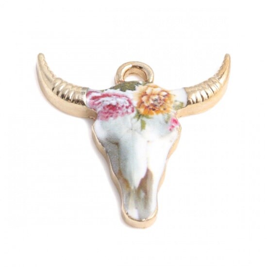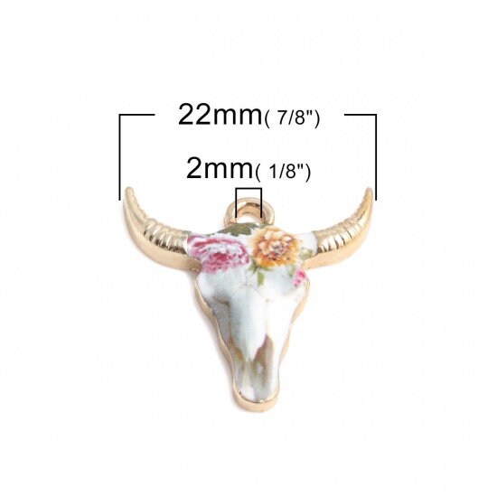 *10* 22x21mm Floral Enamel Cow Head Charms #4