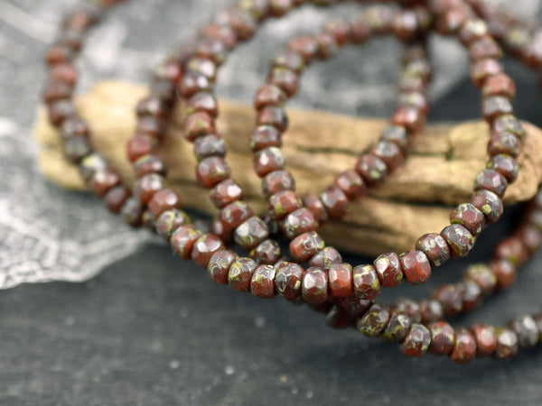 *50* 2x3mm Opaque Burnt Orange Picasso Faceted Micro Spacer Beads