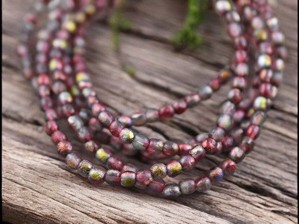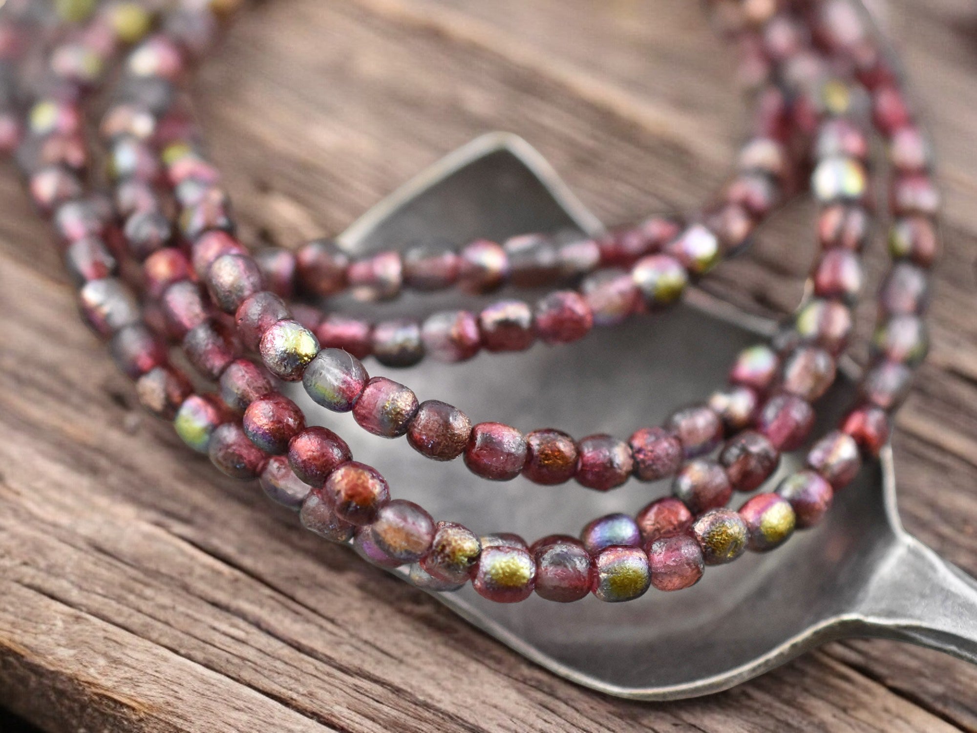 *50* 3mm Etched Mystic Cranberry Round Druk Beads