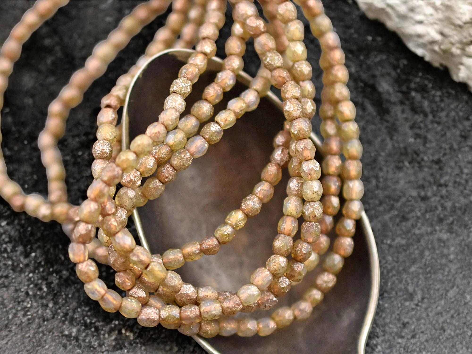 *50* 3mm Gold/Copper Etched Champagne Opal Fire Polished Round Beads