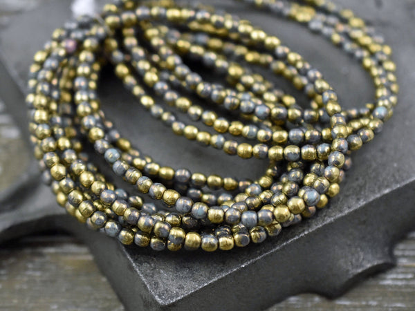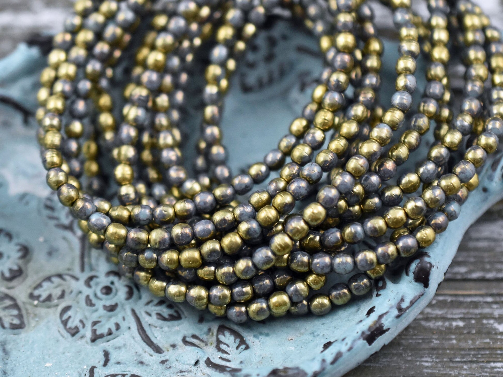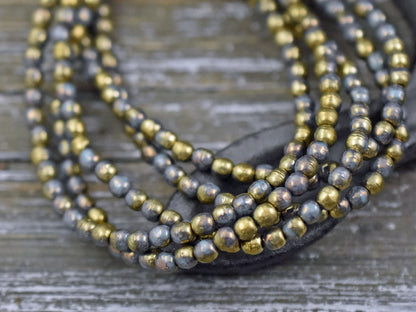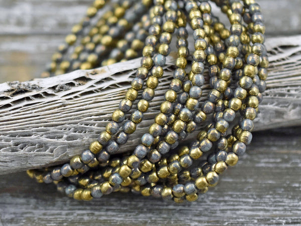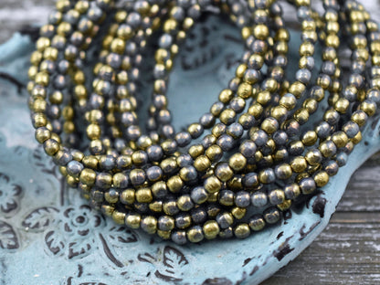 *50* 3mm Gold Washed Sea Green Round Druk Beads