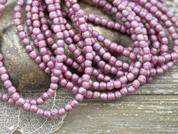 *50* 3mm Metallic Pink Washed Pink Round Druk Beads