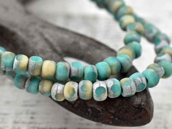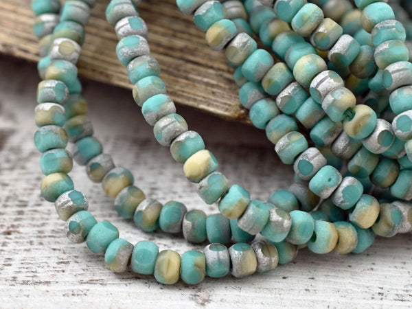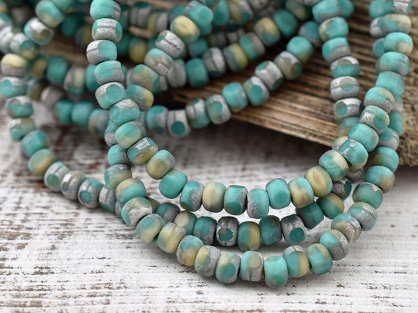 *50* 3x4mm Etched Beige Turquoise Trica Beads