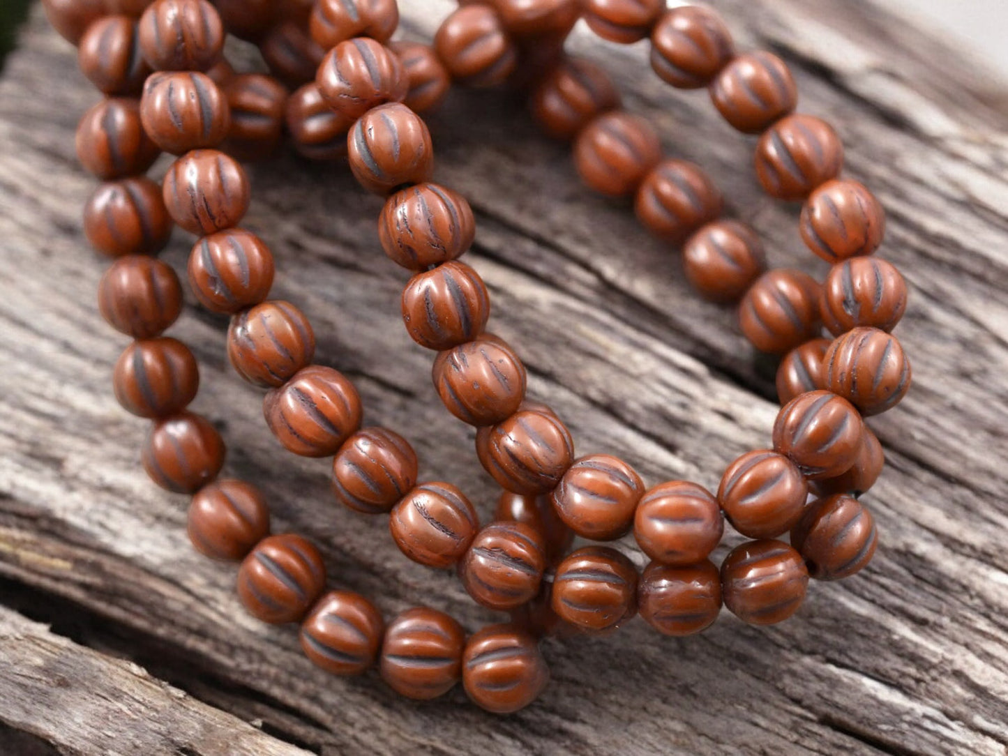 *50* 4mm Brown Washed Burnt Orange Opal Melon Beads