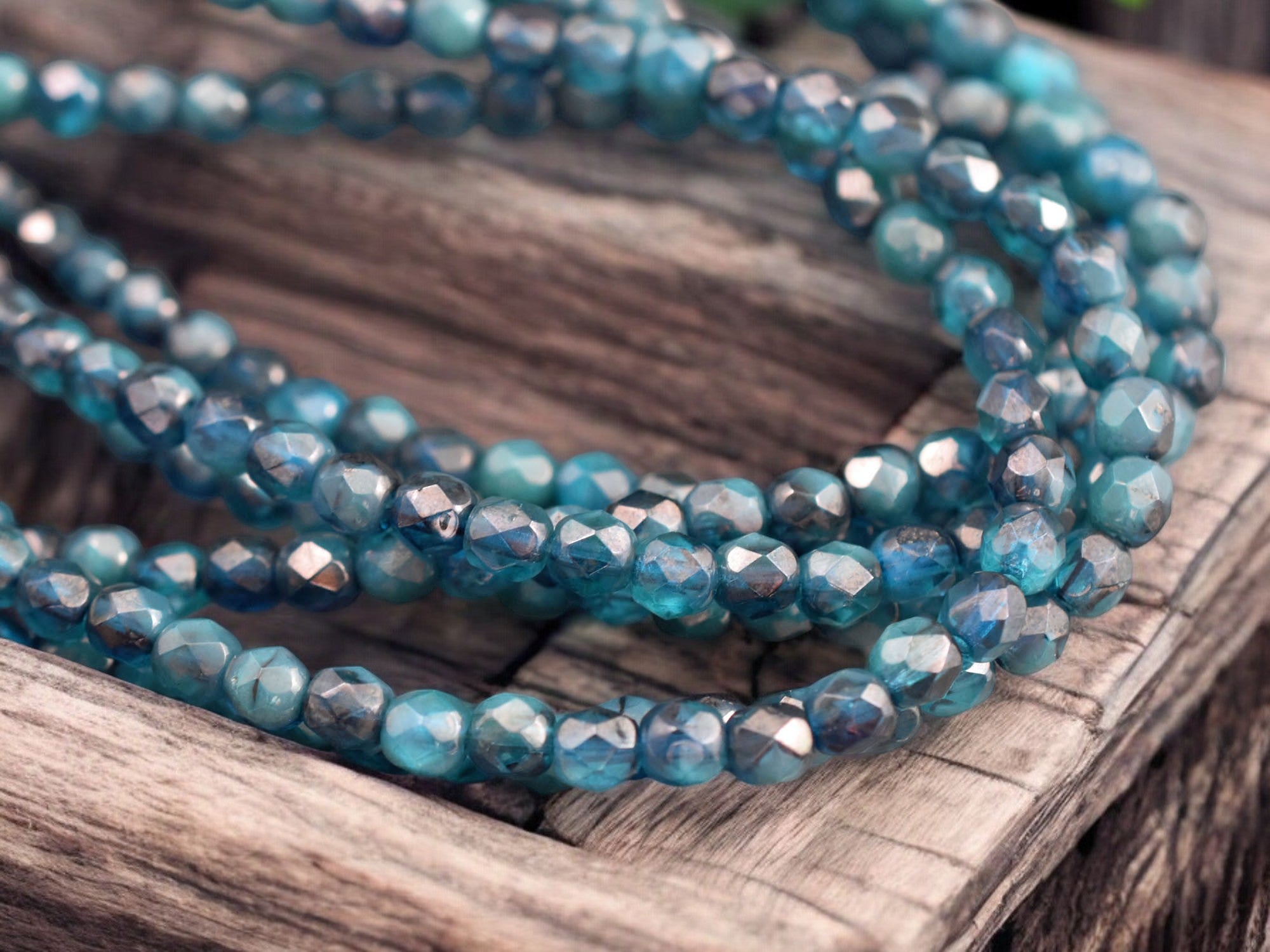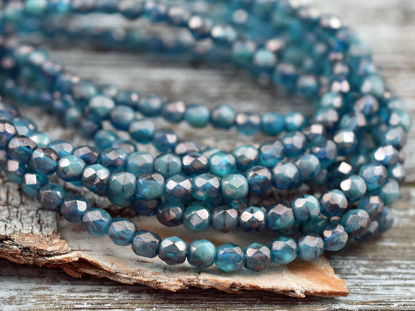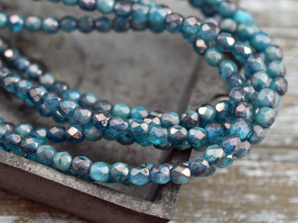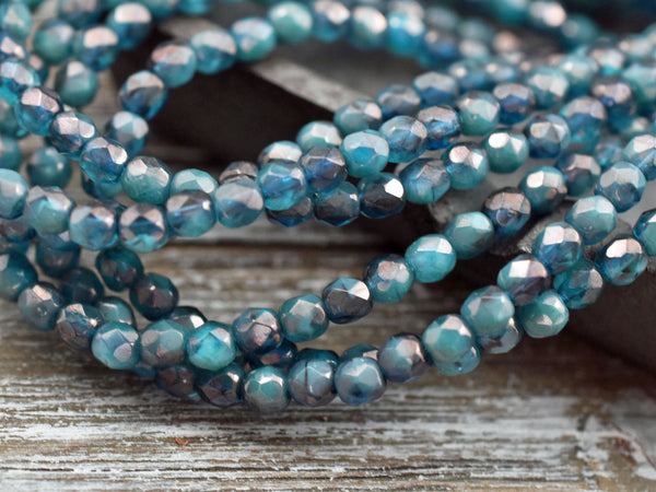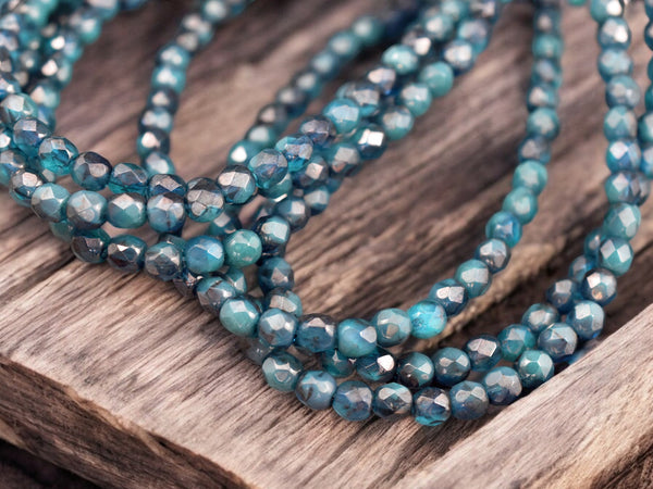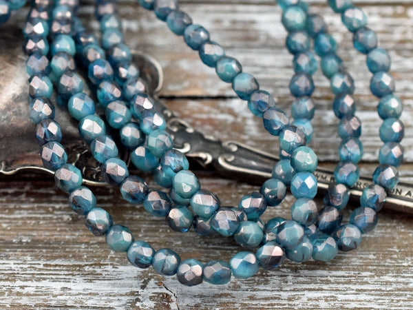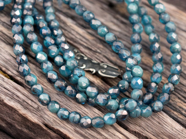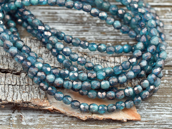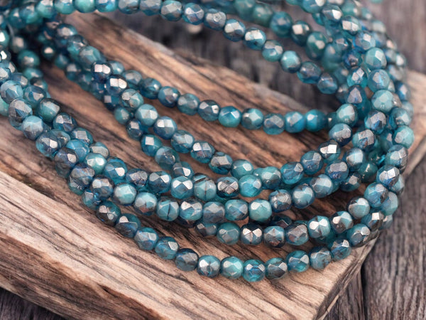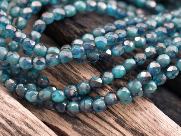 *50* 4mm Laguna Blue Luster Fire Polished Round Beads