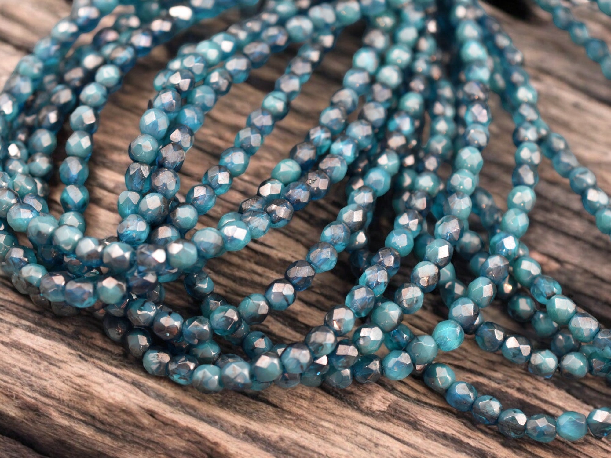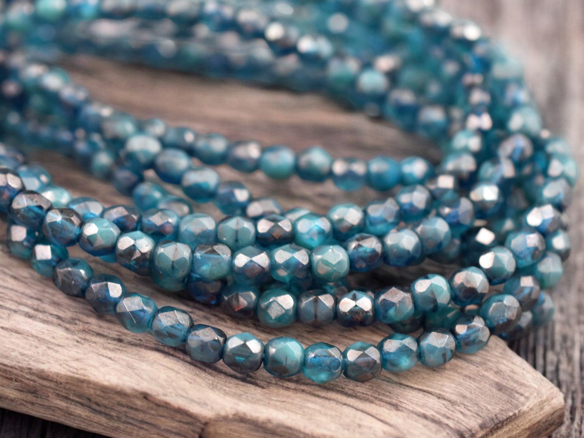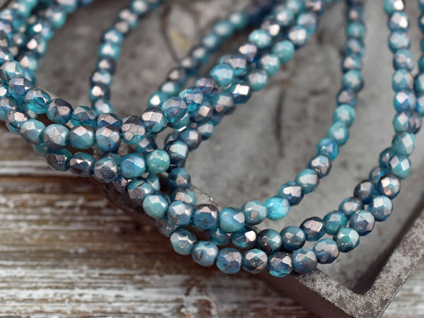 *50* 4mm Laguna Blue Luster Fire Polished Round Beads