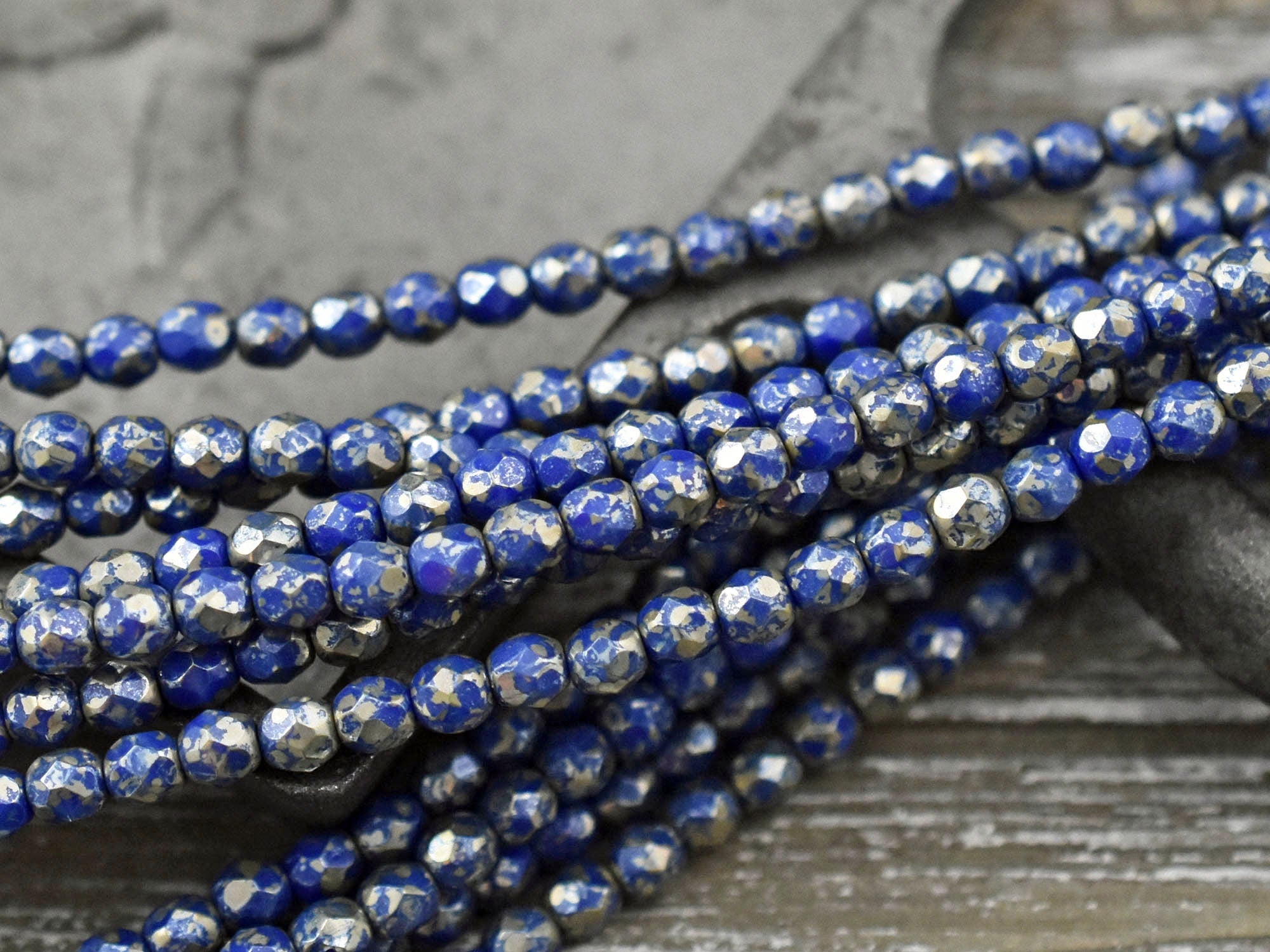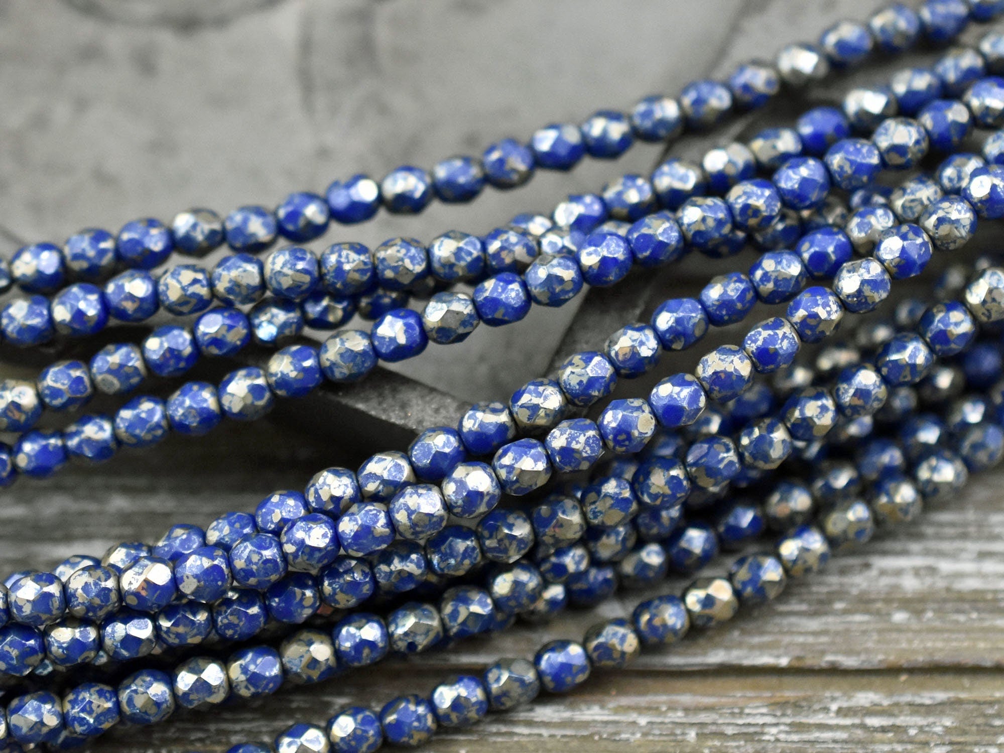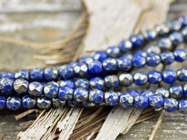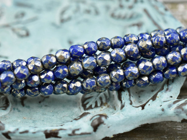 *50* 4mm Opaque Cobalt Silver Picasso Fire Polished Round Beads