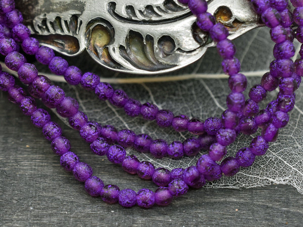 *50* 4mm Purple Washed Etched Matte Purple Round Druk Beads