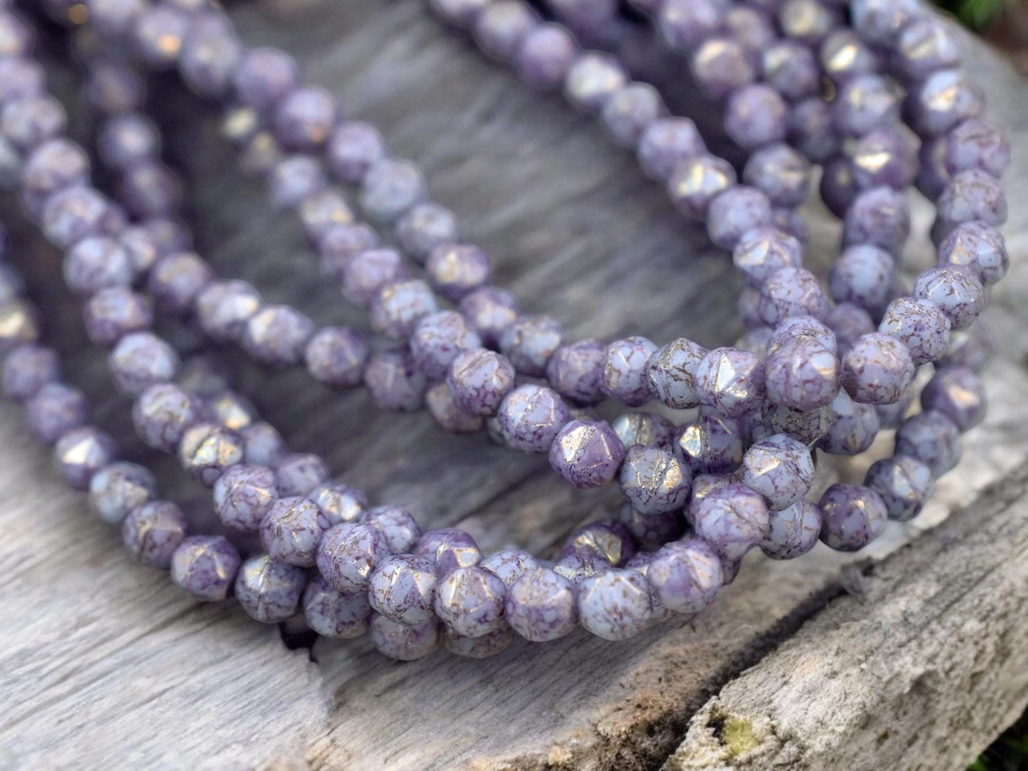 *50* 4mm Purple Washed Periwinkle Blue English Cut Round Beads