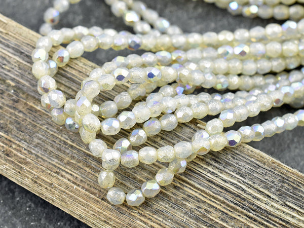 *50* 4mm Silver Mercury Washed Ivory Opal AB Fire Polished Round Beads