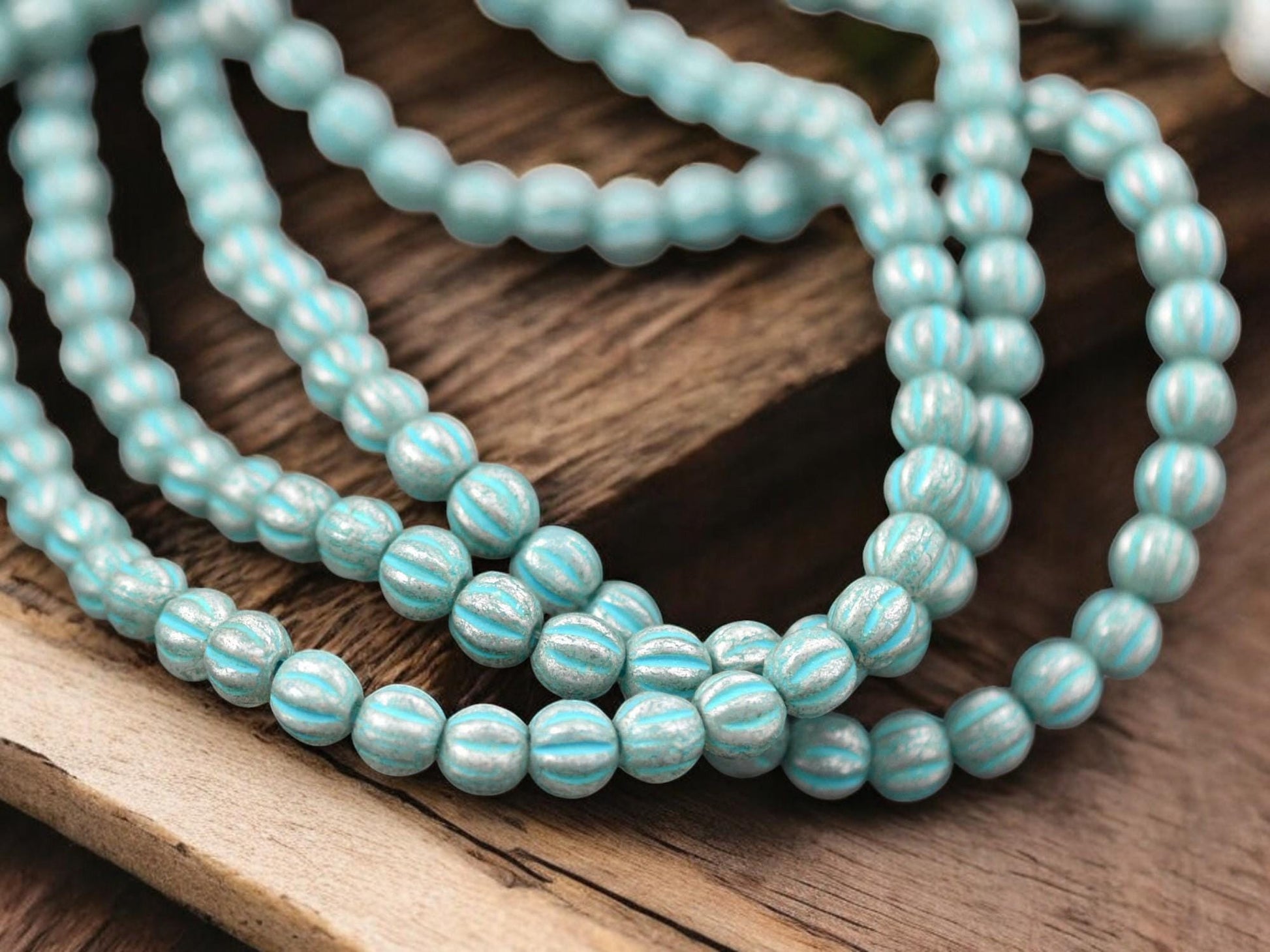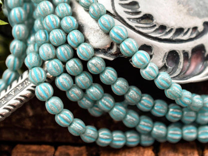 *50* 4mm Turquoise Washed Blue Aqua Mercury Fluted Round Beads