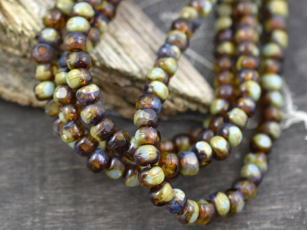 *50* 4x3mm Turquoise Amber Picasso Trica Beads