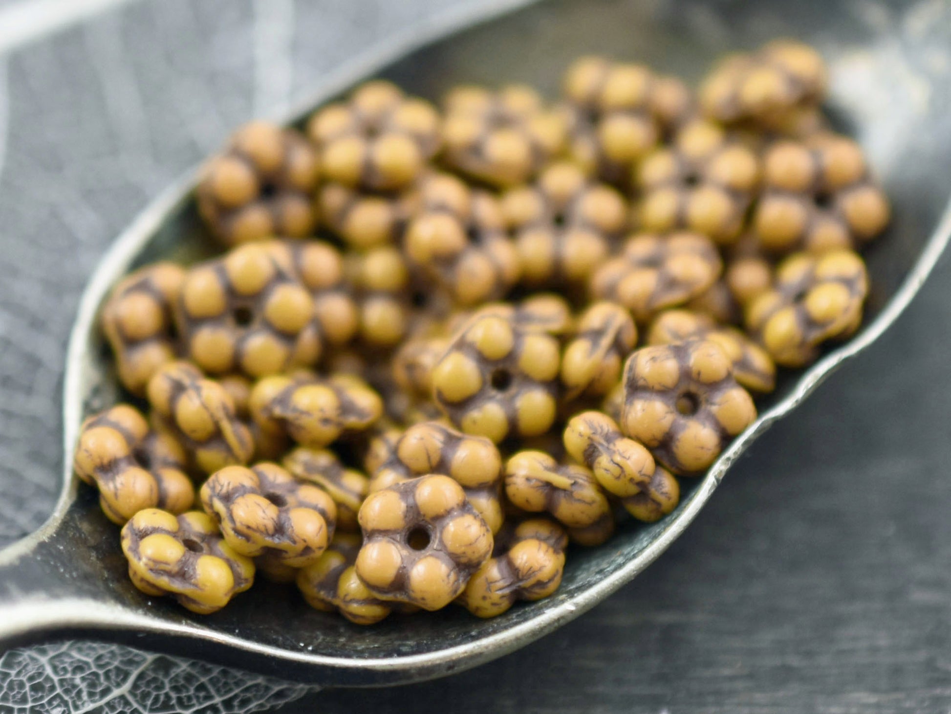 *50* 5mm Brown Washed Opaque Mustard Yellow Forget Me Not Rondelle Daisy Beads