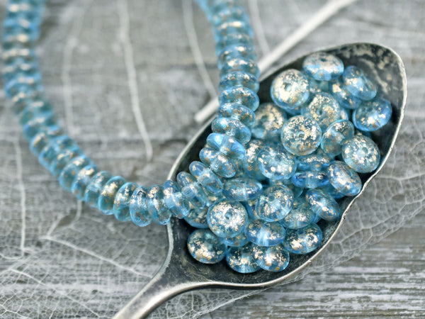 *50* 6x2mm Antique Gold Washed Blue Aqua Smooth Rondelle Beads