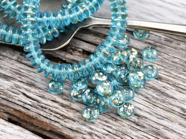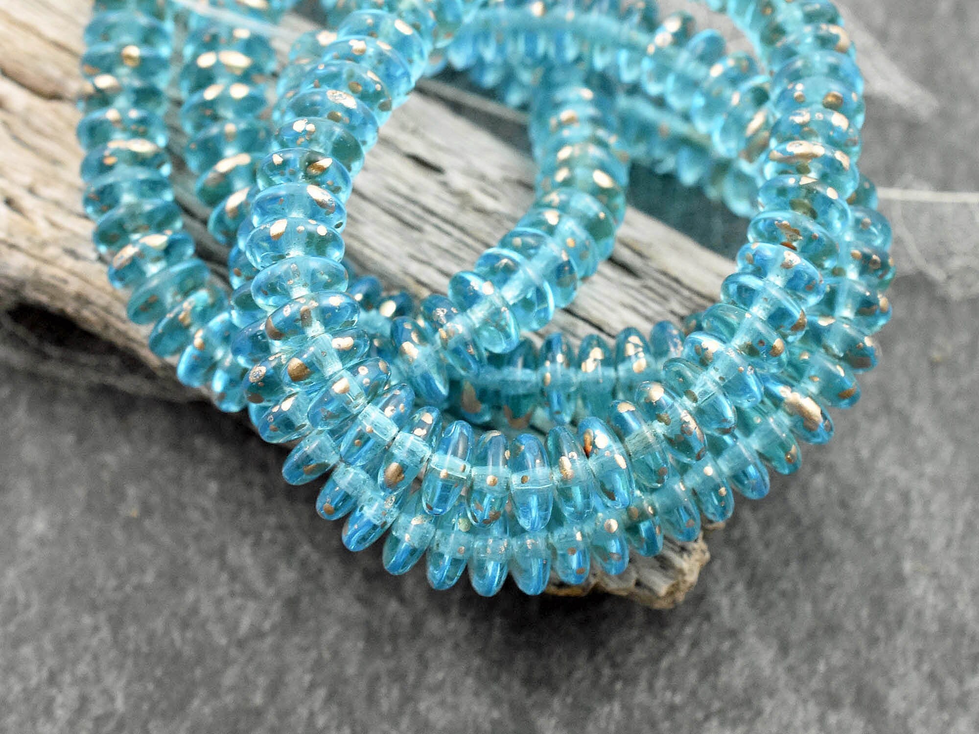 *50* 6x2mm Gold Washed Blue Aqua Smooth Rondelle Beads