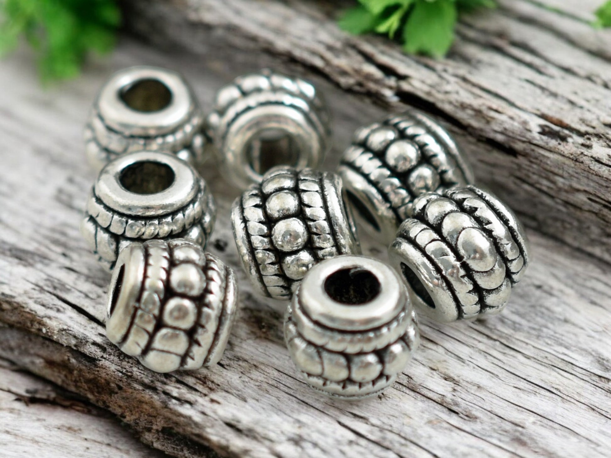 Type/Shape: Large hole metal drum/barrel beads -- great for leather cord projects