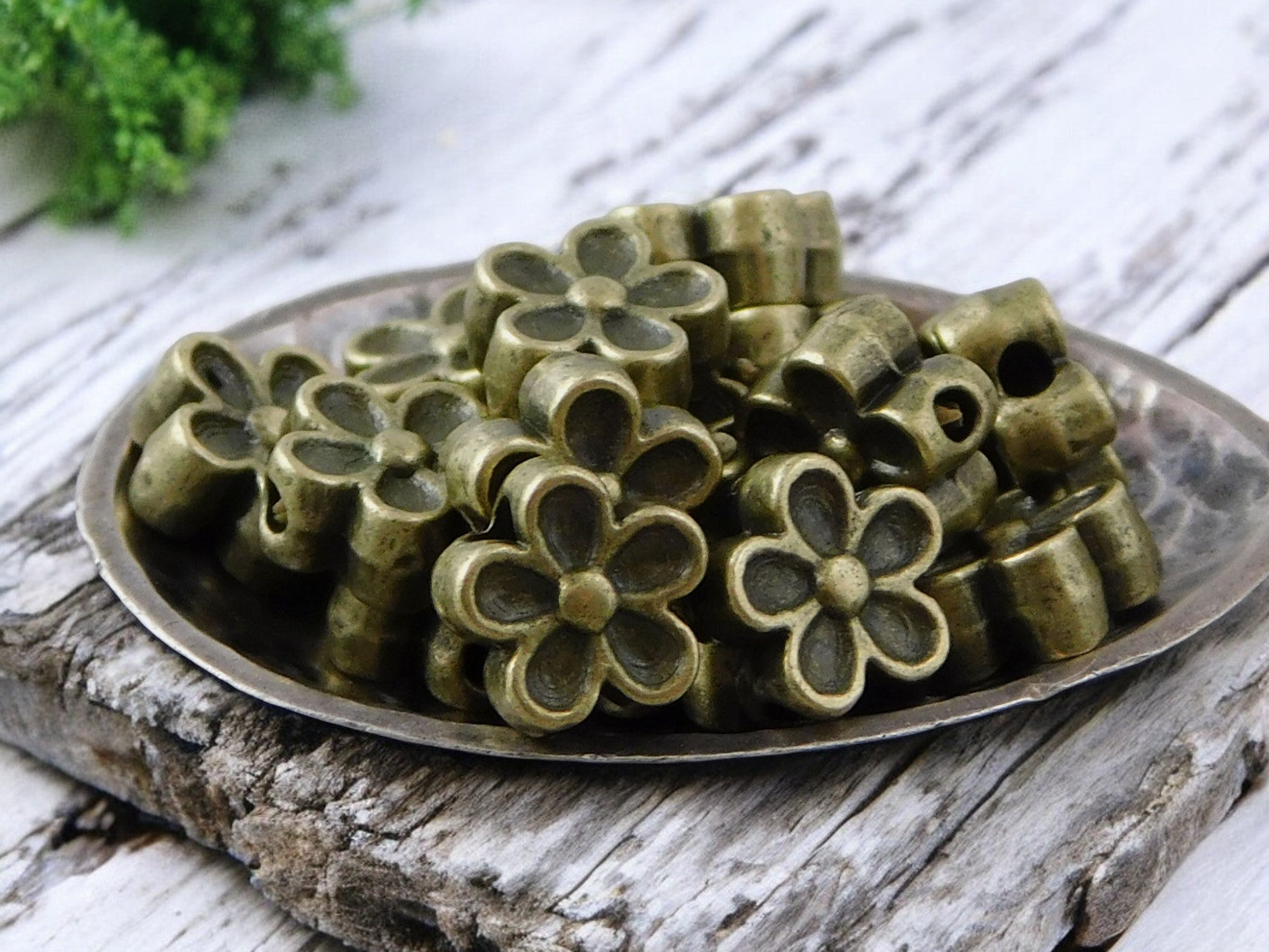 *100* 7mm Antique Bronze Hawaiian Flower Beads