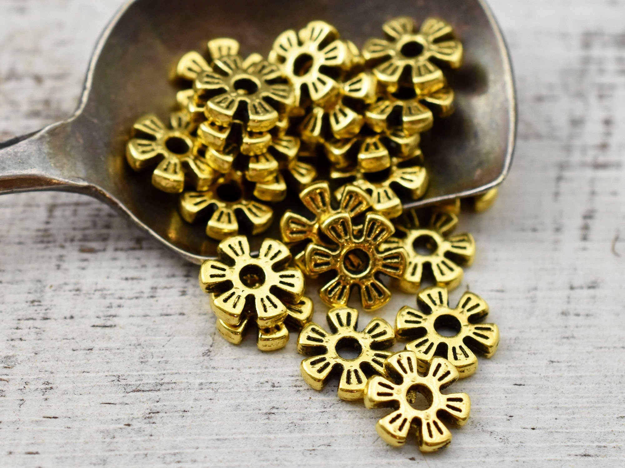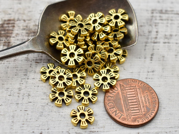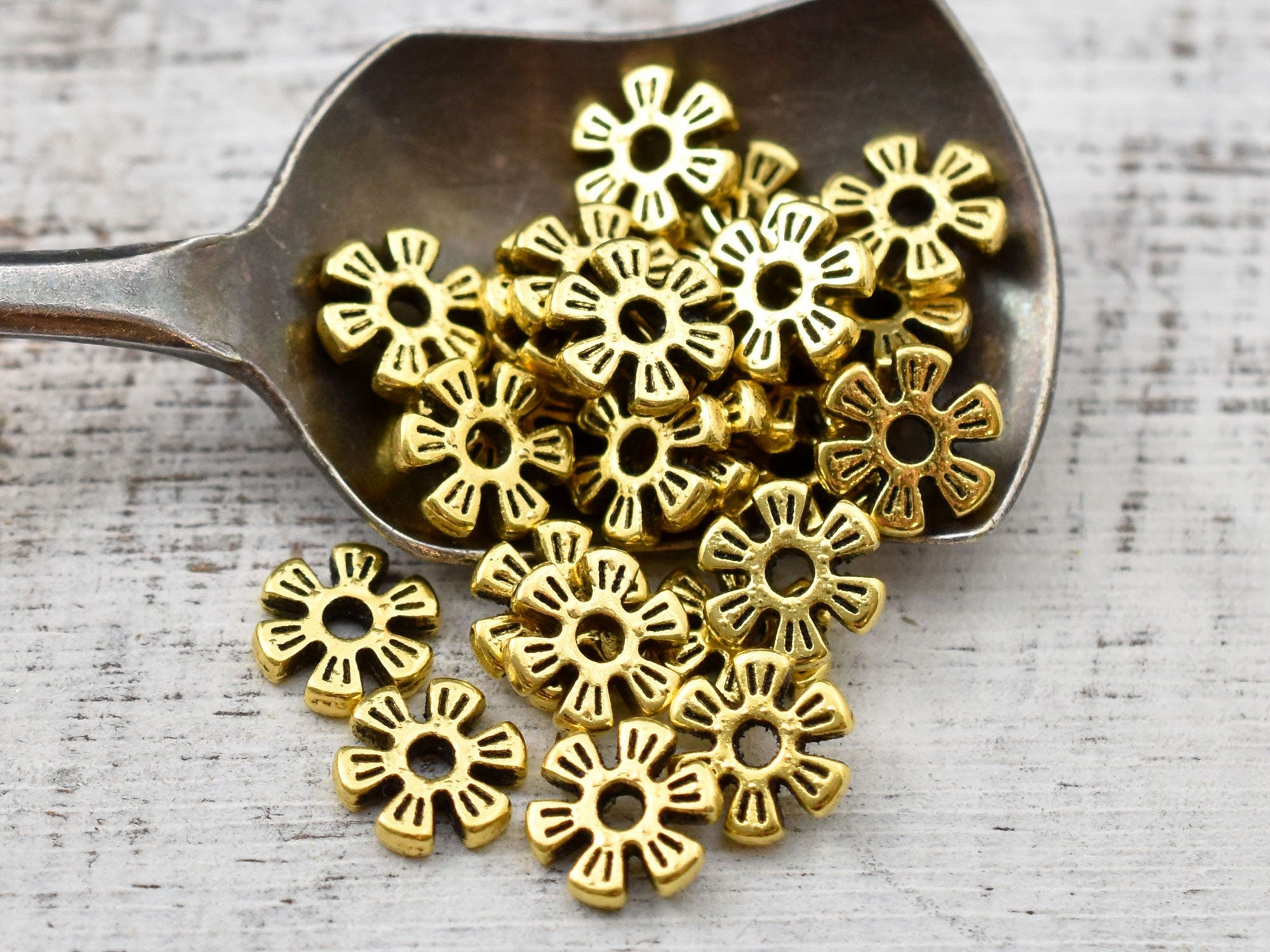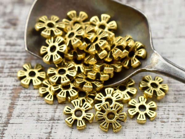 *100* 8mm Antique Gold Flower Heishi Spacer Beads
