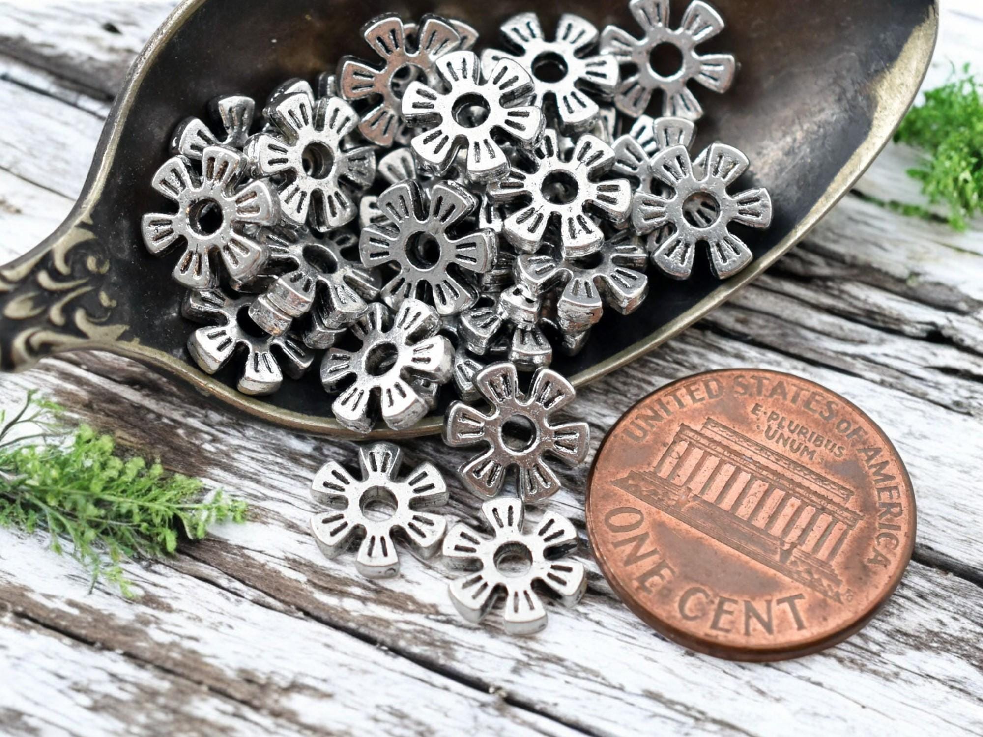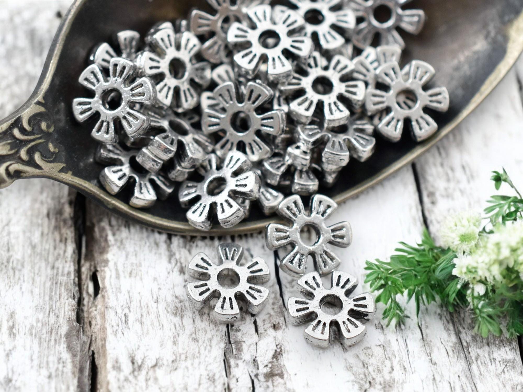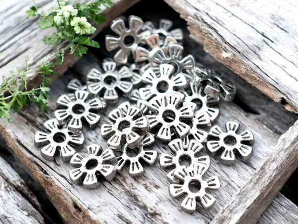 *100* 8mm Antique Silver Flower Heishi Spacer Beads