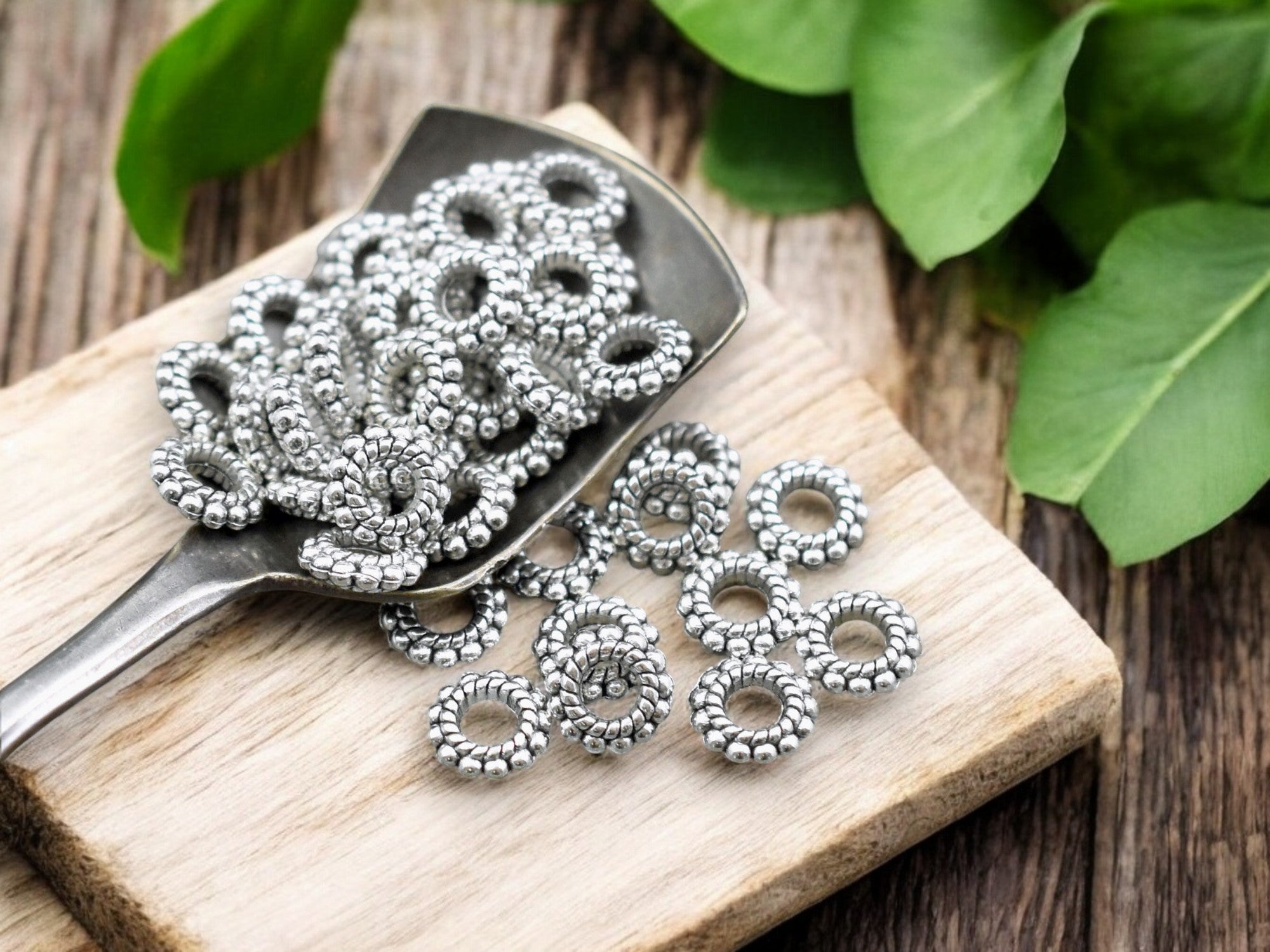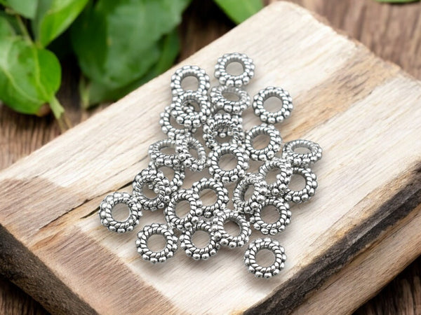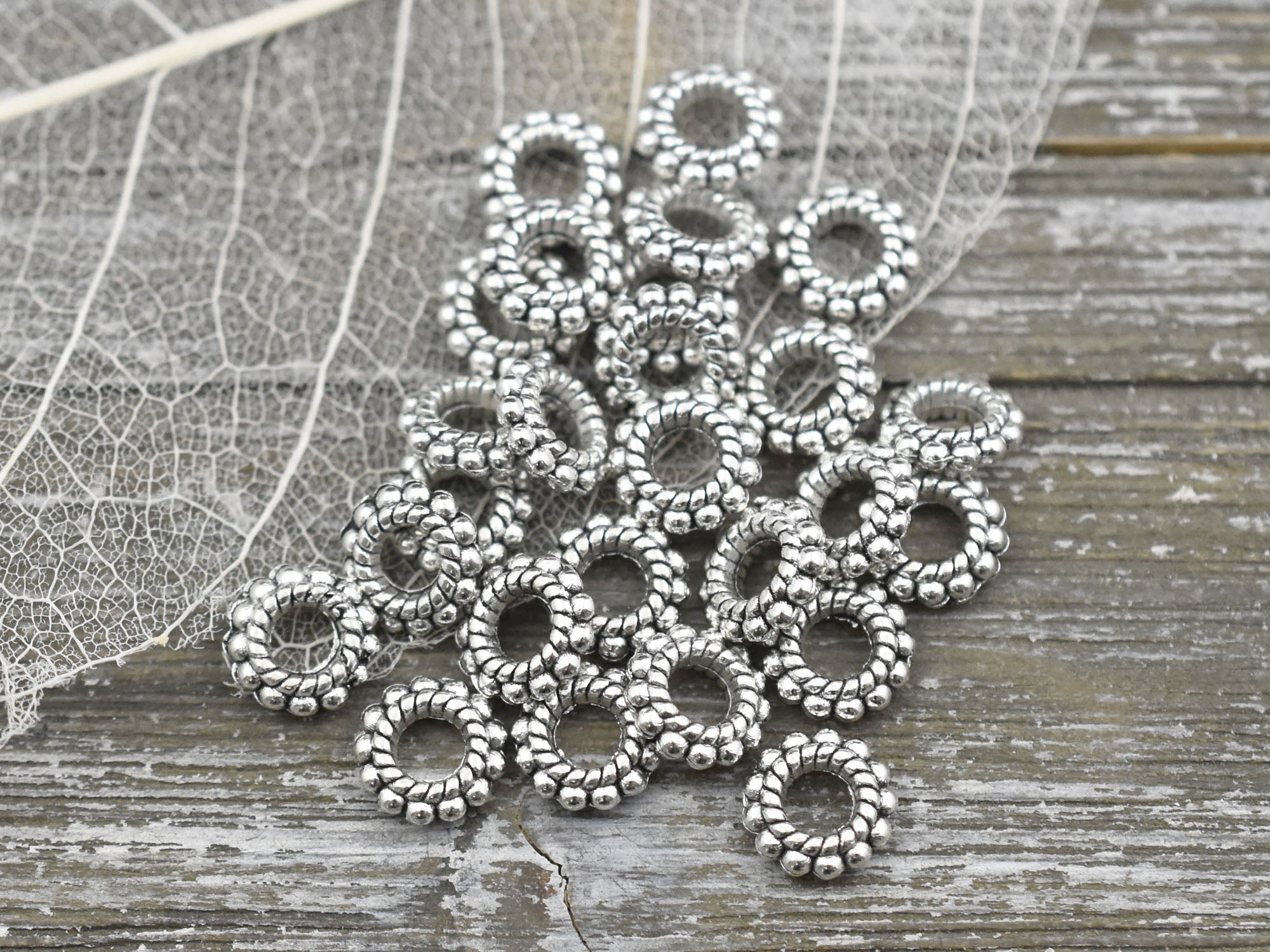 *100* 8x3mm Antique Silver Large Hole Daisy Spacer Beads