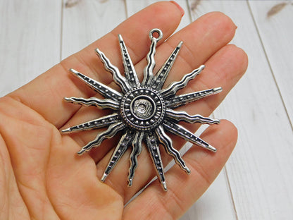58mm Antique Silver Sunray Pendant