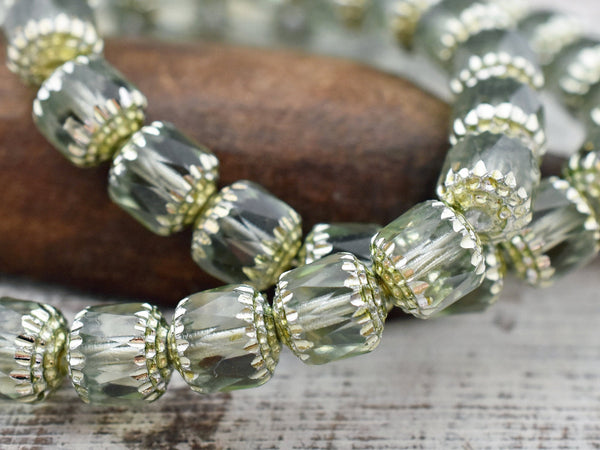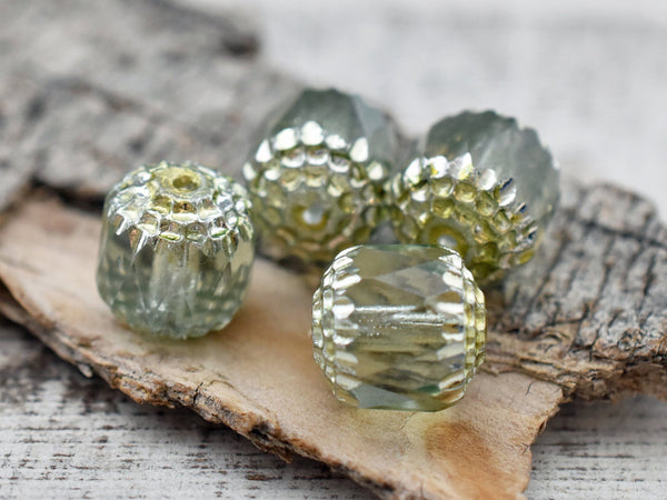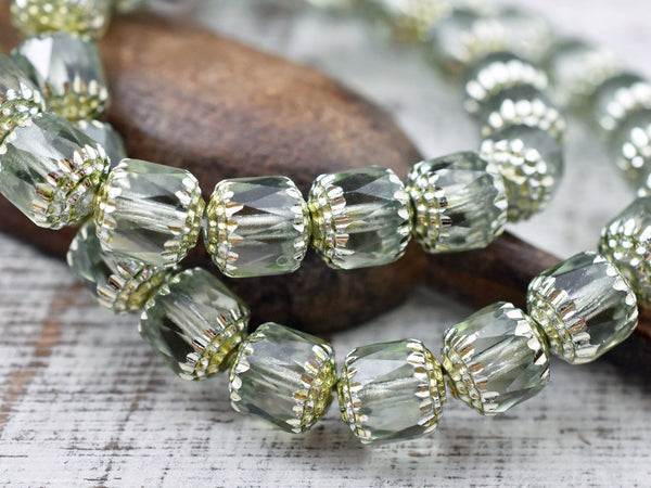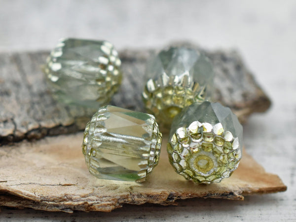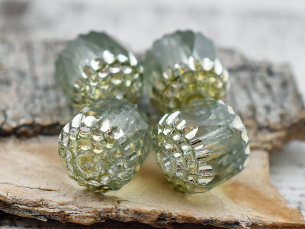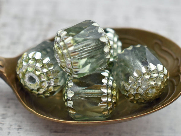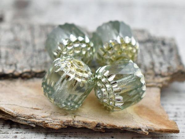 *12* 10mm Silver Washed Celadon Green Fire Polished Cathedral Beads