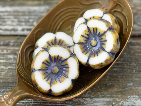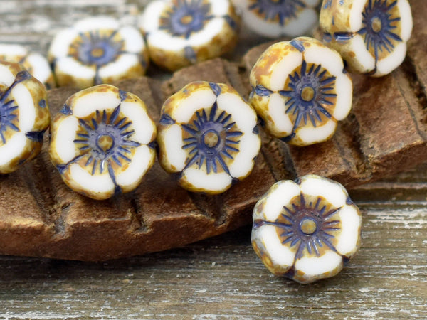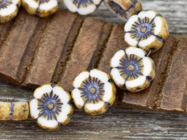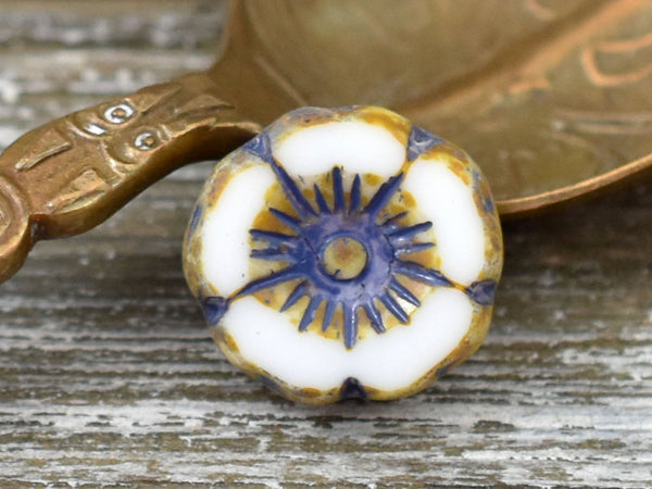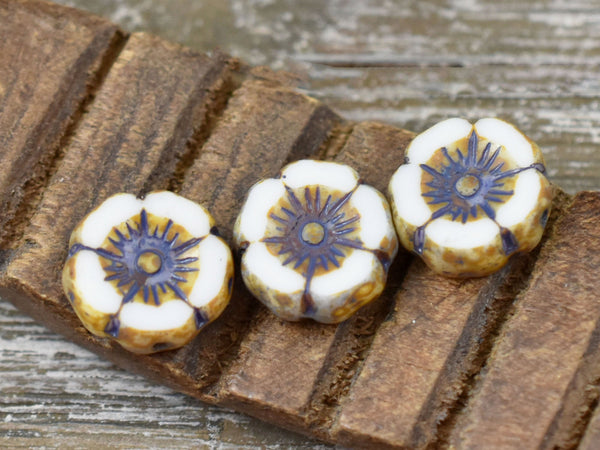 *12* 12mm Etched Purple Washed White Picasso Hawaiian Flower Beads