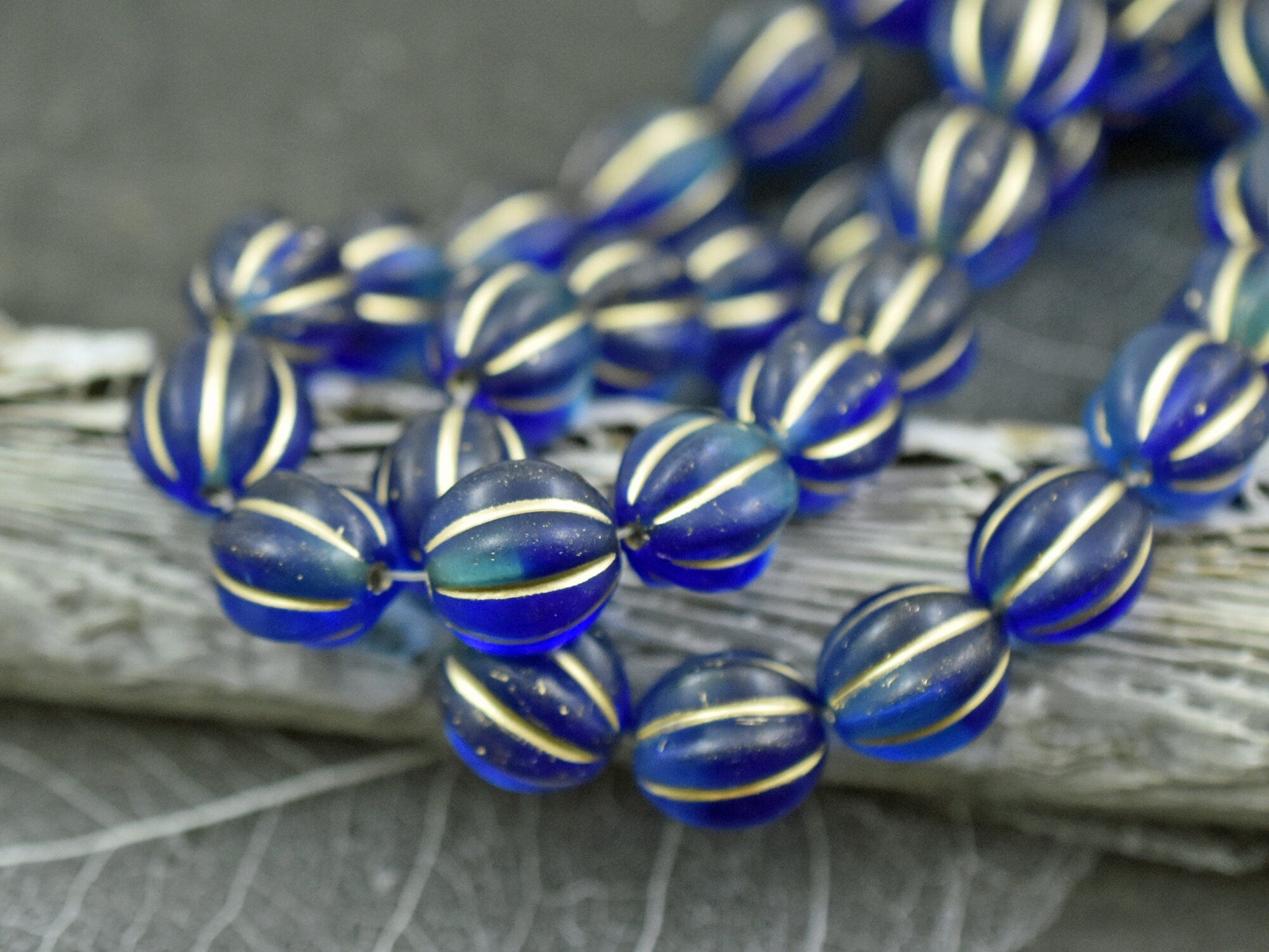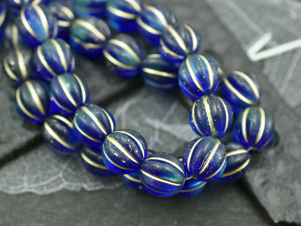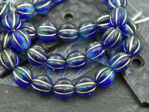 *6* 12mm Gold Washed Sapphire Aqua Round Melon Beads