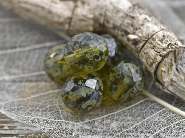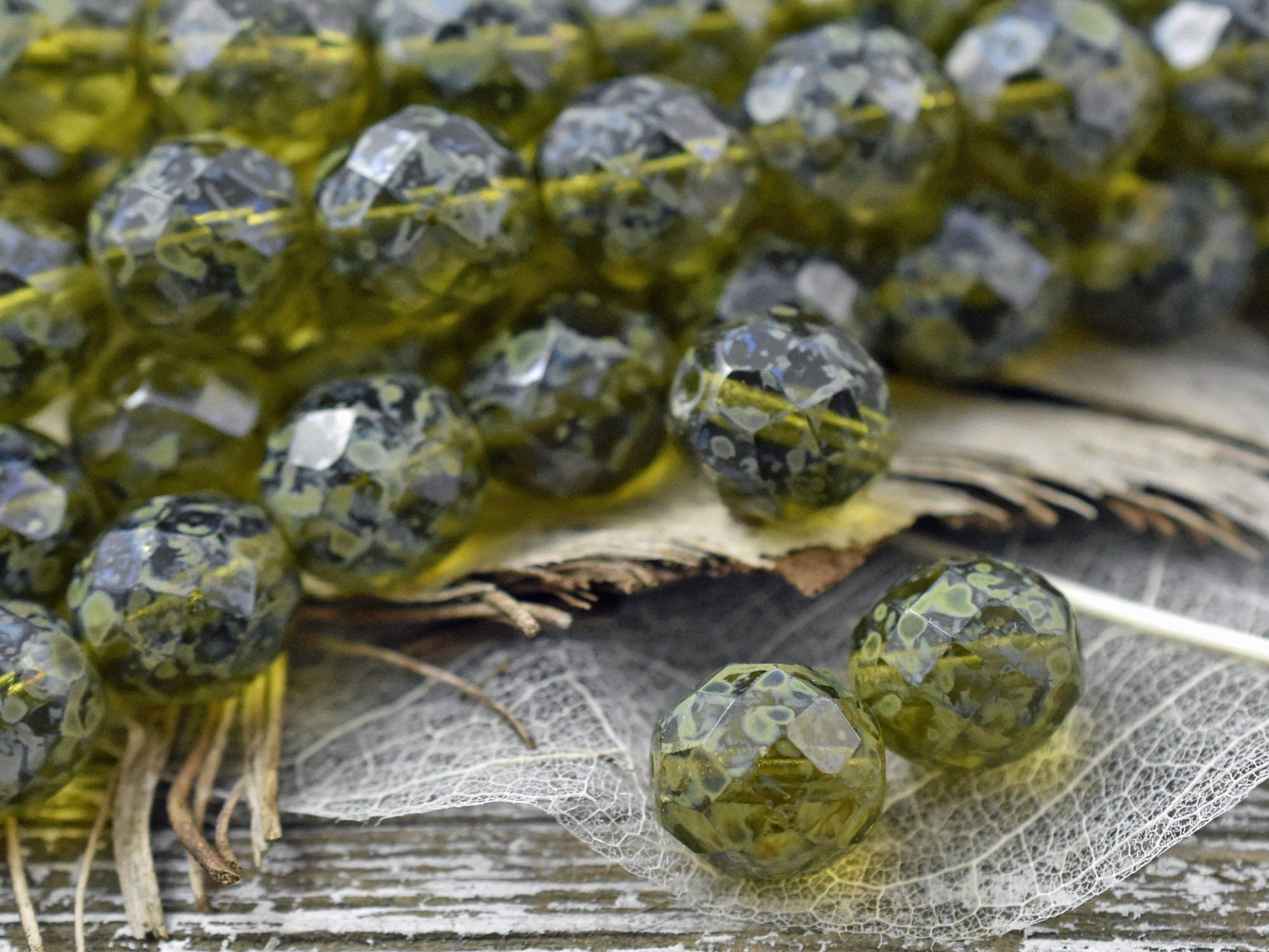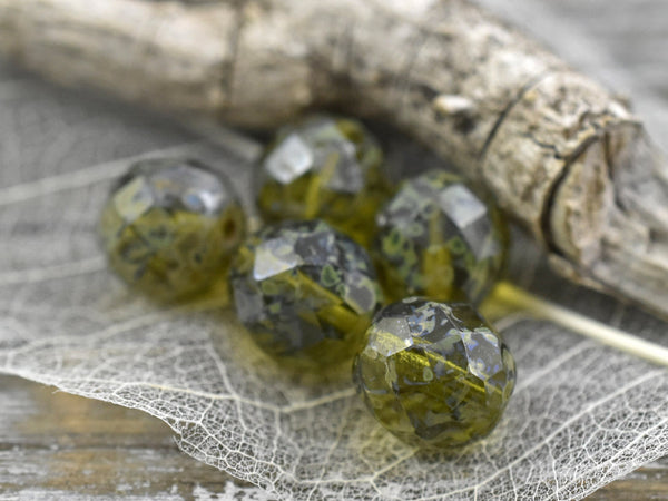*6* 12mm Olivine Picasso Fire Polished Round Beads