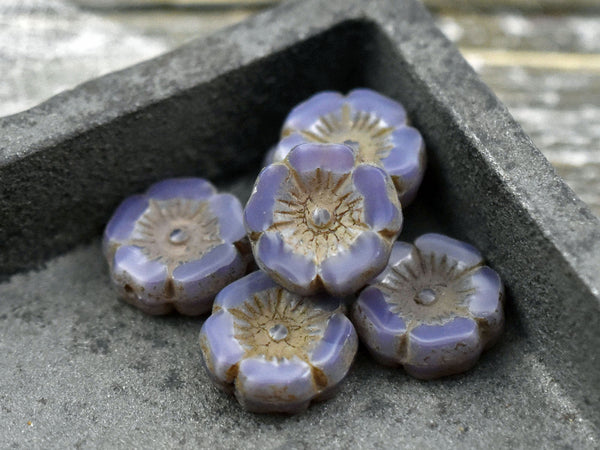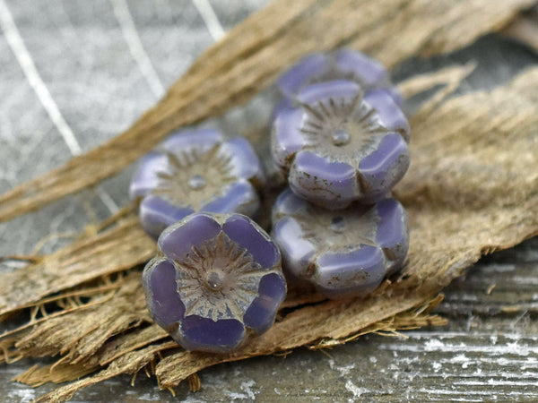 *6* 12mm Purple Opal Carved Table Cut Flower Beads