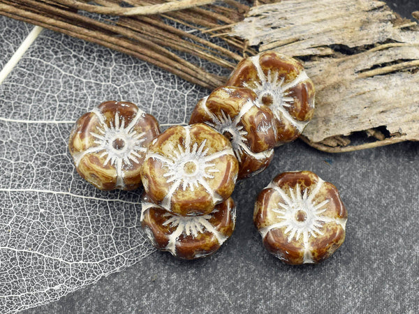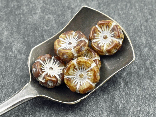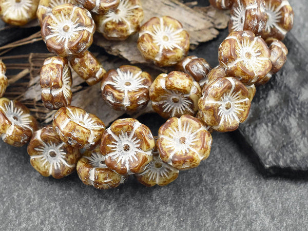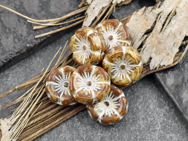 *12* 12mm Silver Mercury Washed Beige Picasso Hawaiian Flower Beads