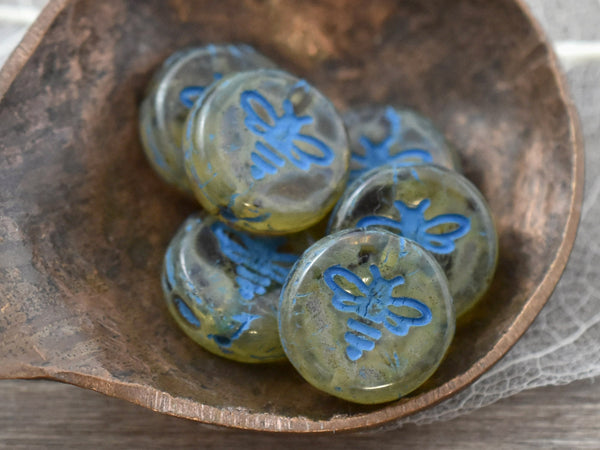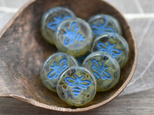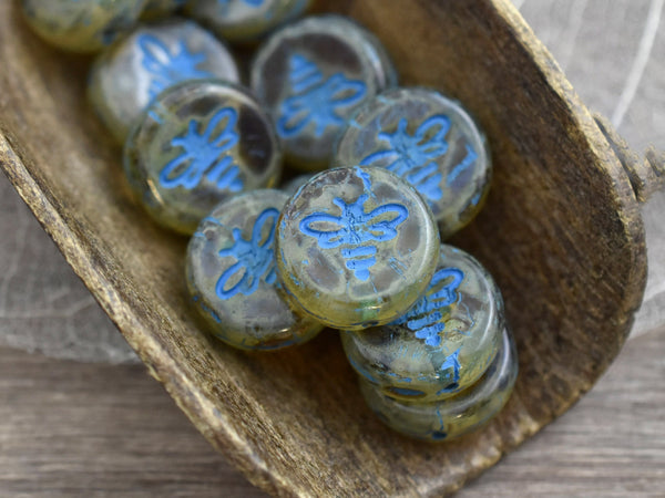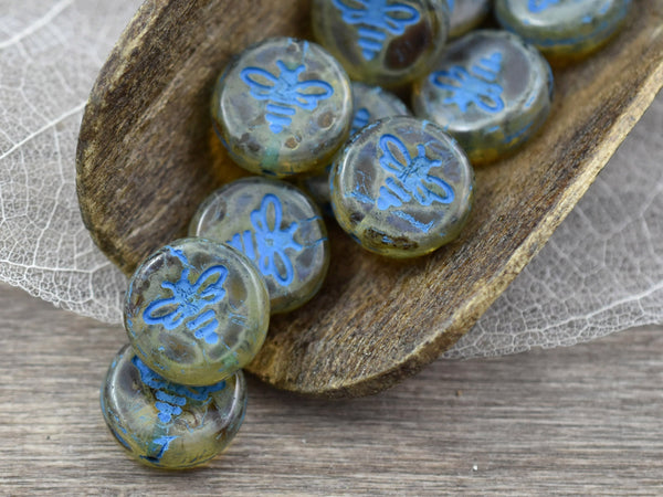 ♥ Type/Shape: Czech pressed glass coin beads with flying bee design (design on both sides of bead)