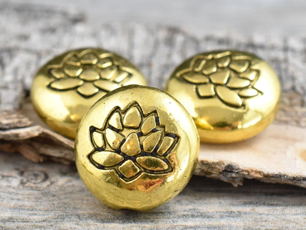 *10* 14mm Antique Gold Lotus Flower Design Coin Beads