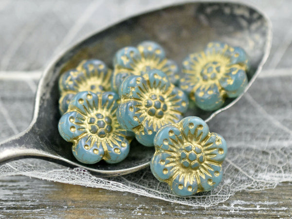 *12* 14mm Gold Washed Aqua Opaline Wildflower Beads