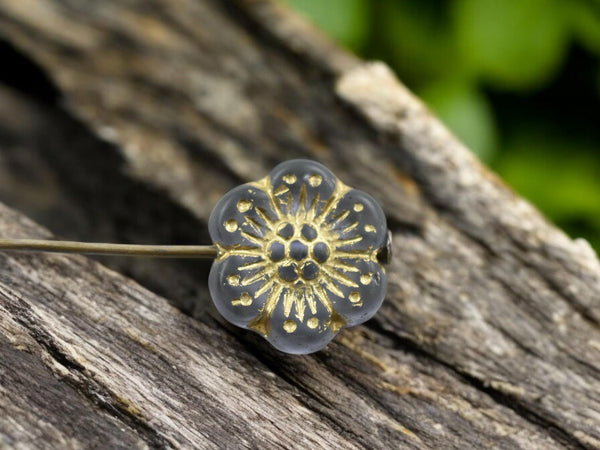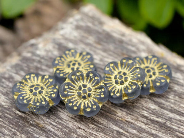 *12* 14mm Gold Washed Translucent Purple Wildflower Beads