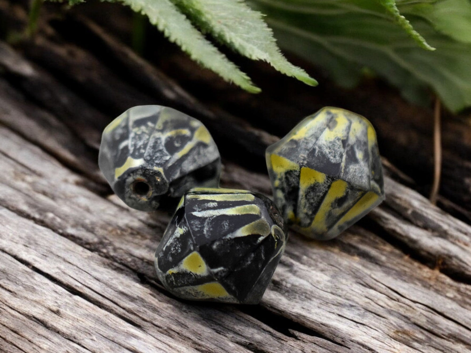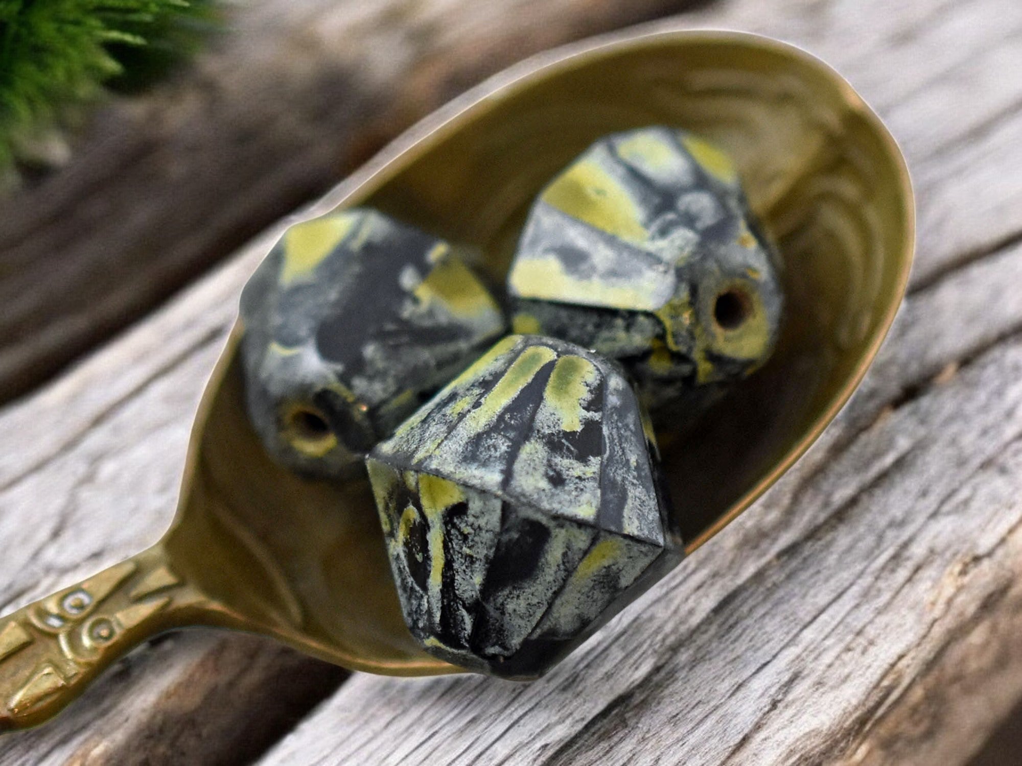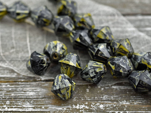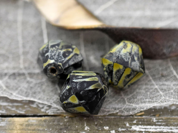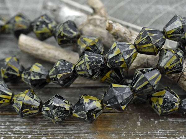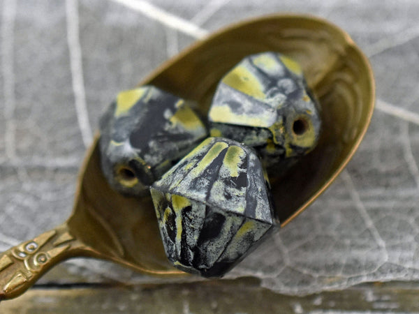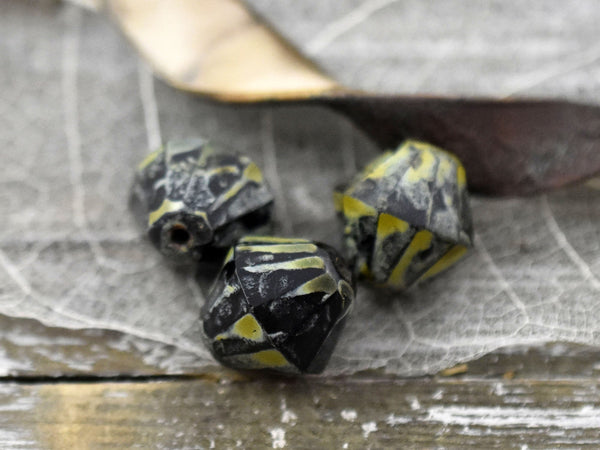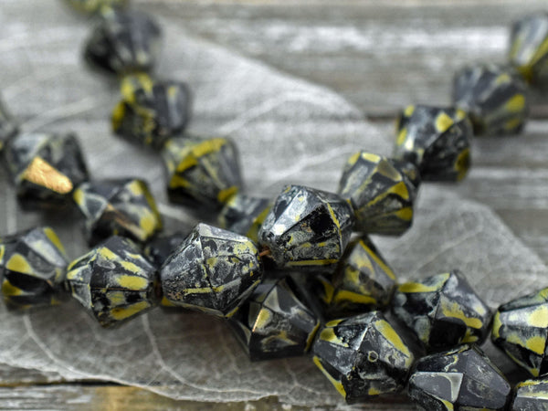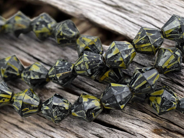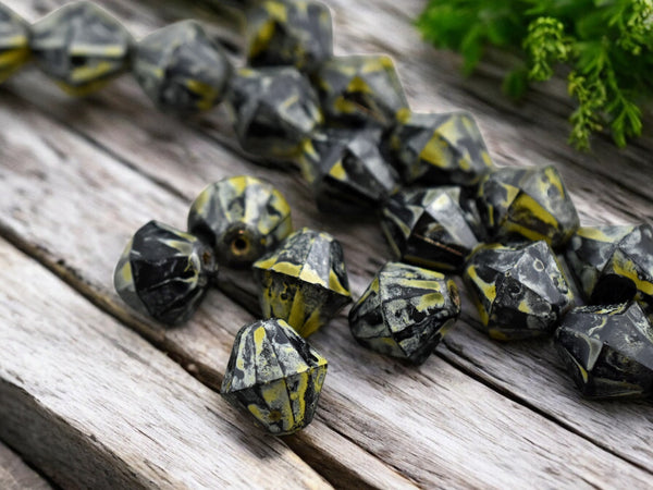 *6* 14mm Jet Travertine Faceted Bicone Beads