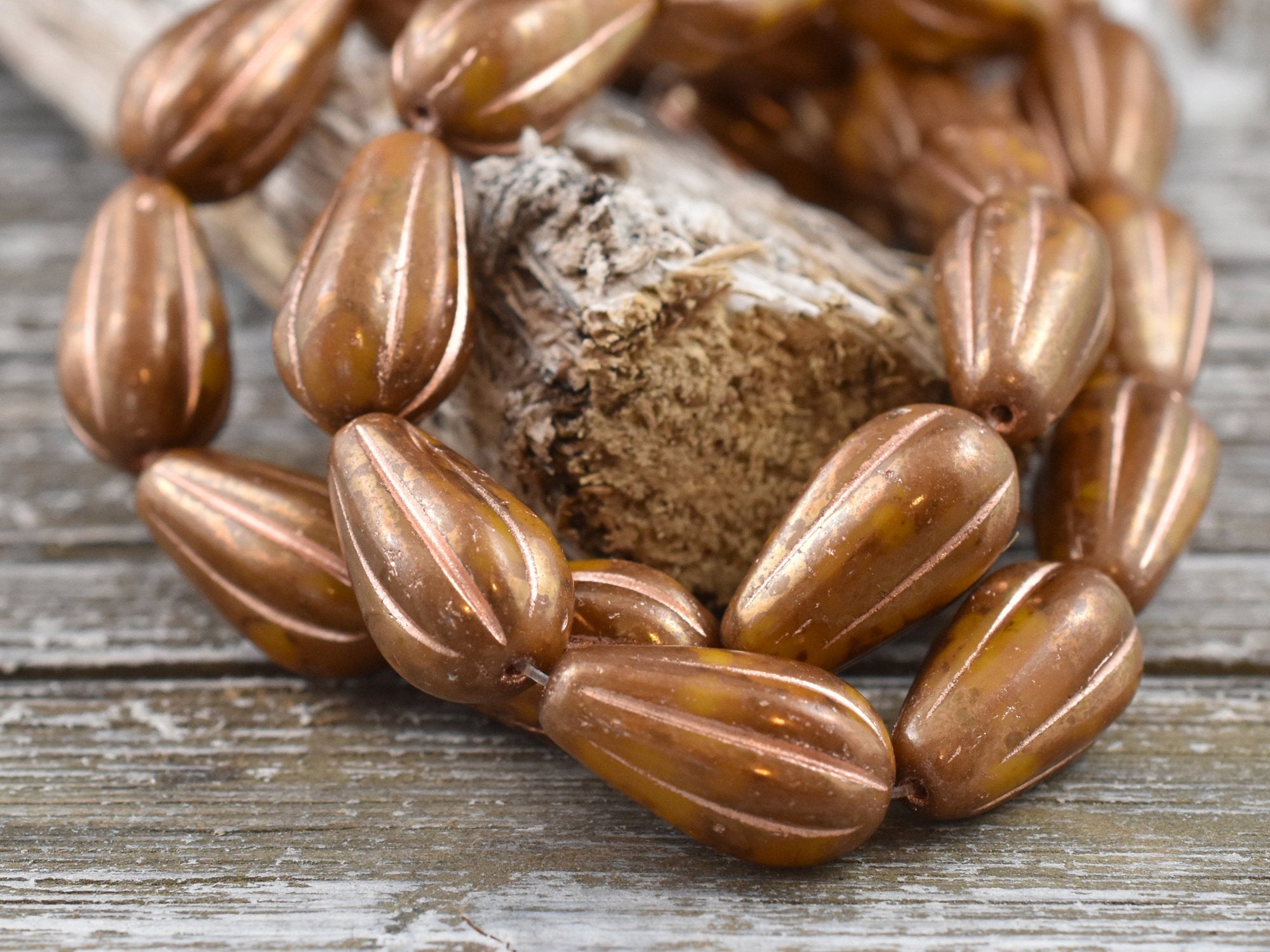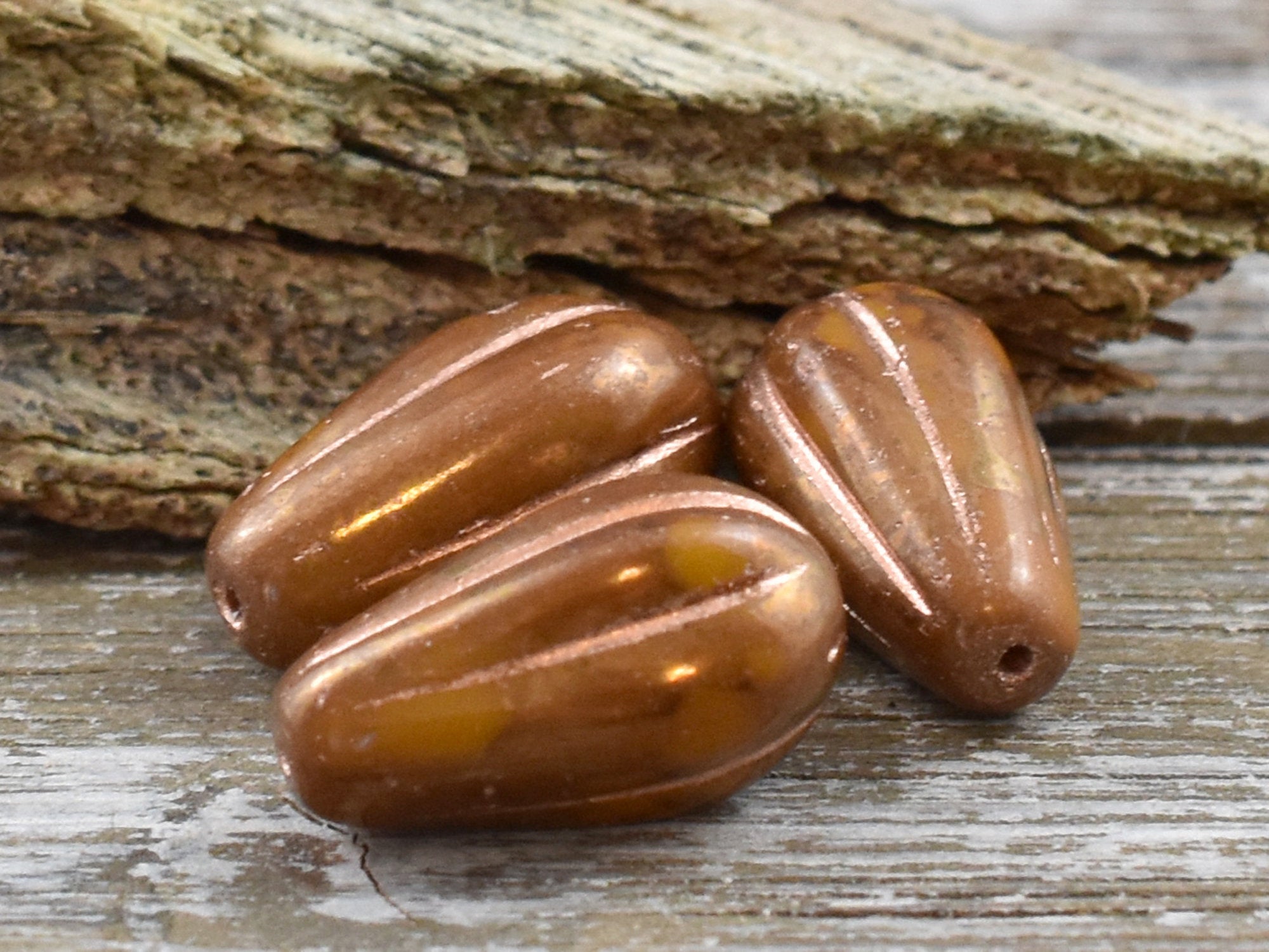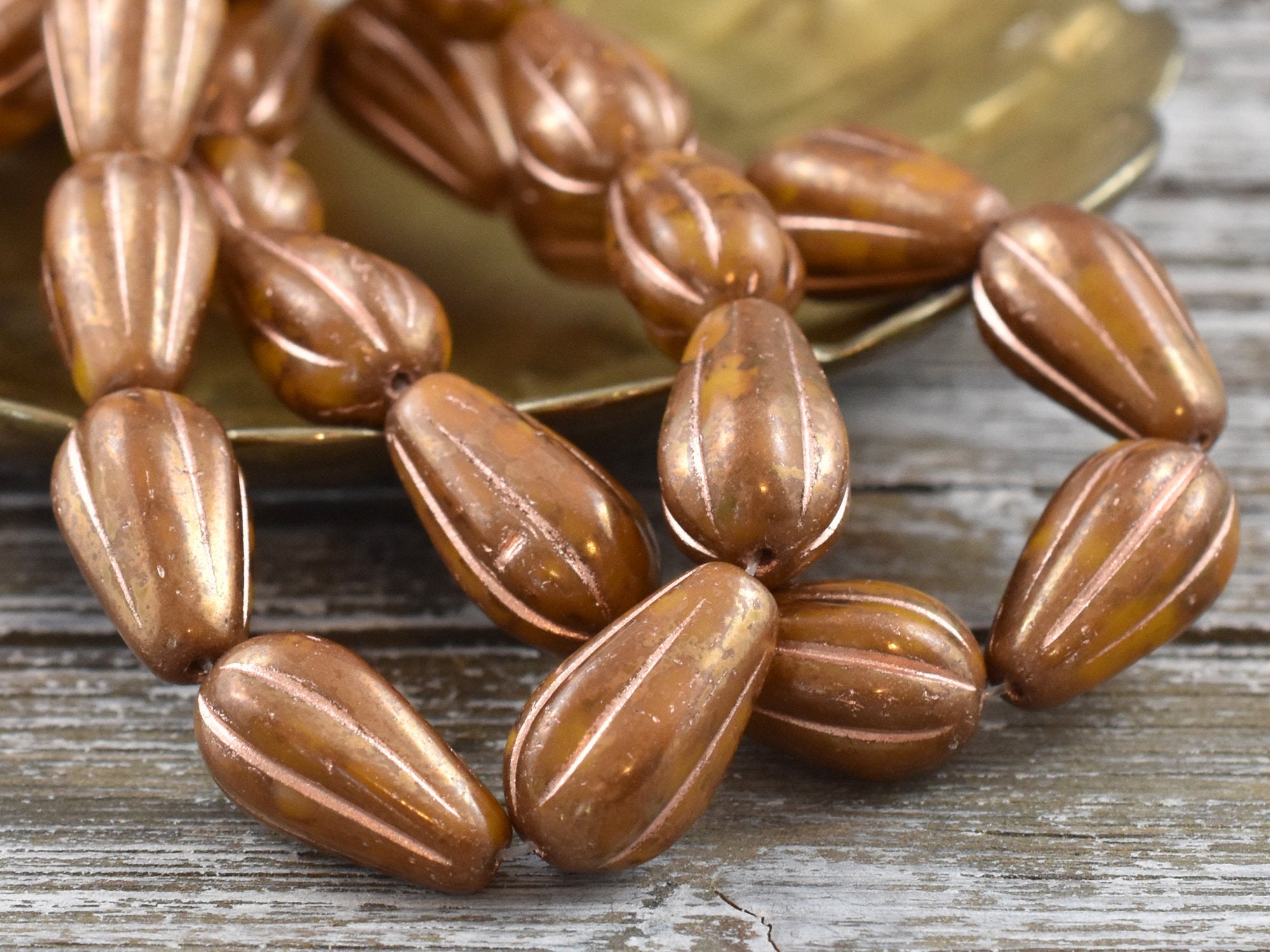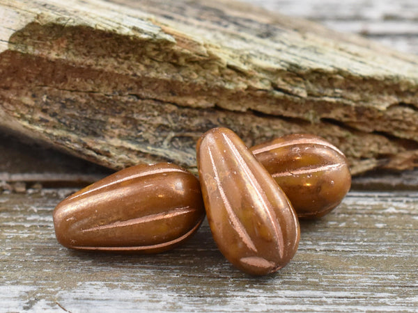 *10* 15x8mm Gold and Copper Washed Spicy Mustard Melon Drop Beads