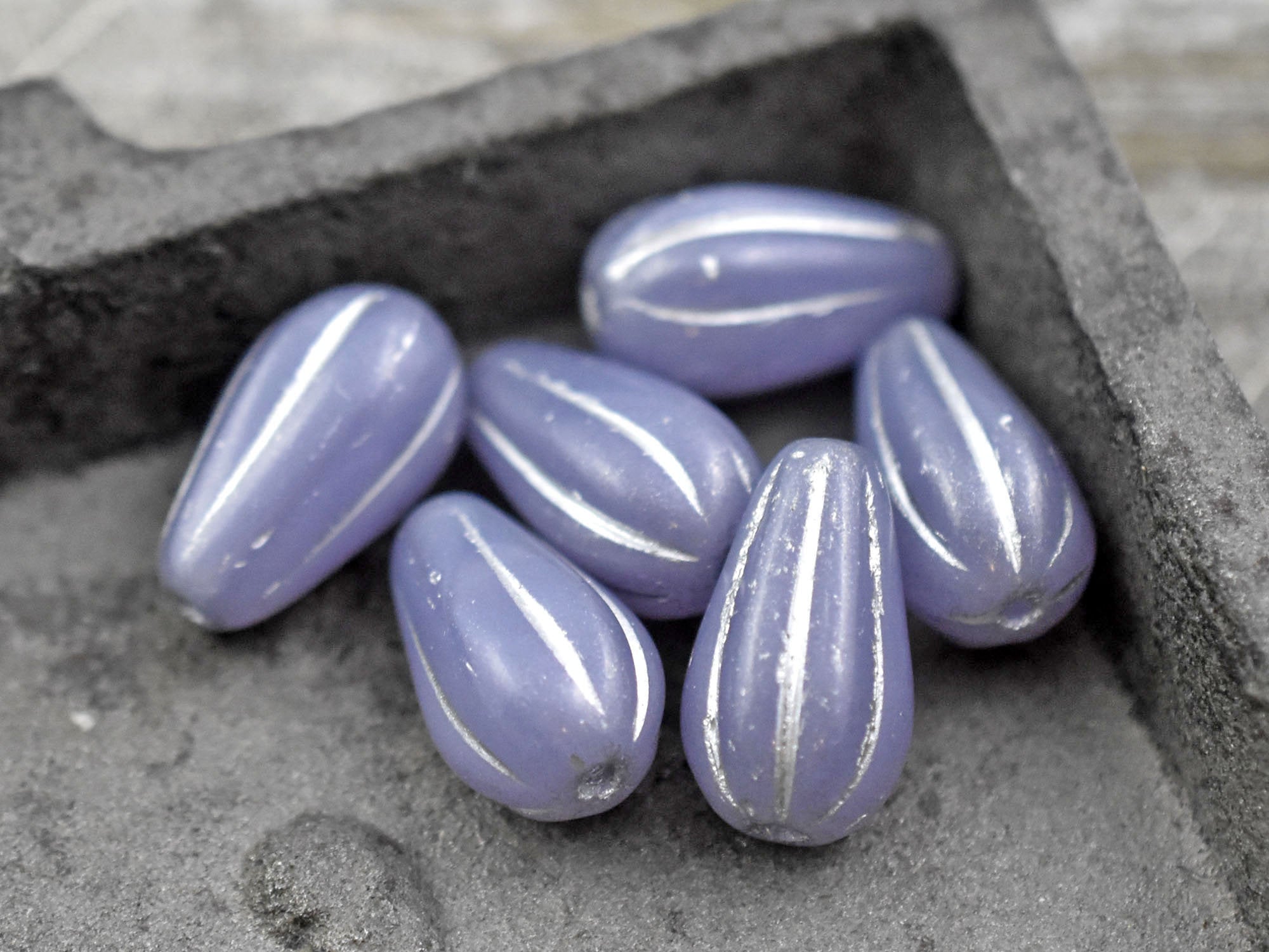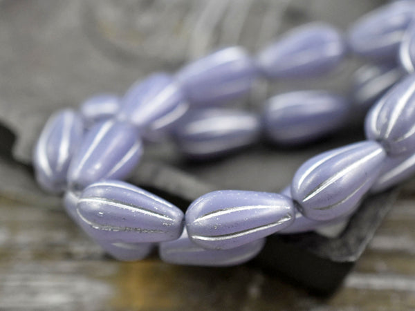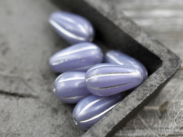 *10* 15x8mm Silver Washed Lavender Opal Melon Drop Beads