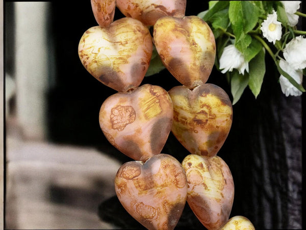 *6* 16mm Matte Crystal & Pink Picasso Heart Beads