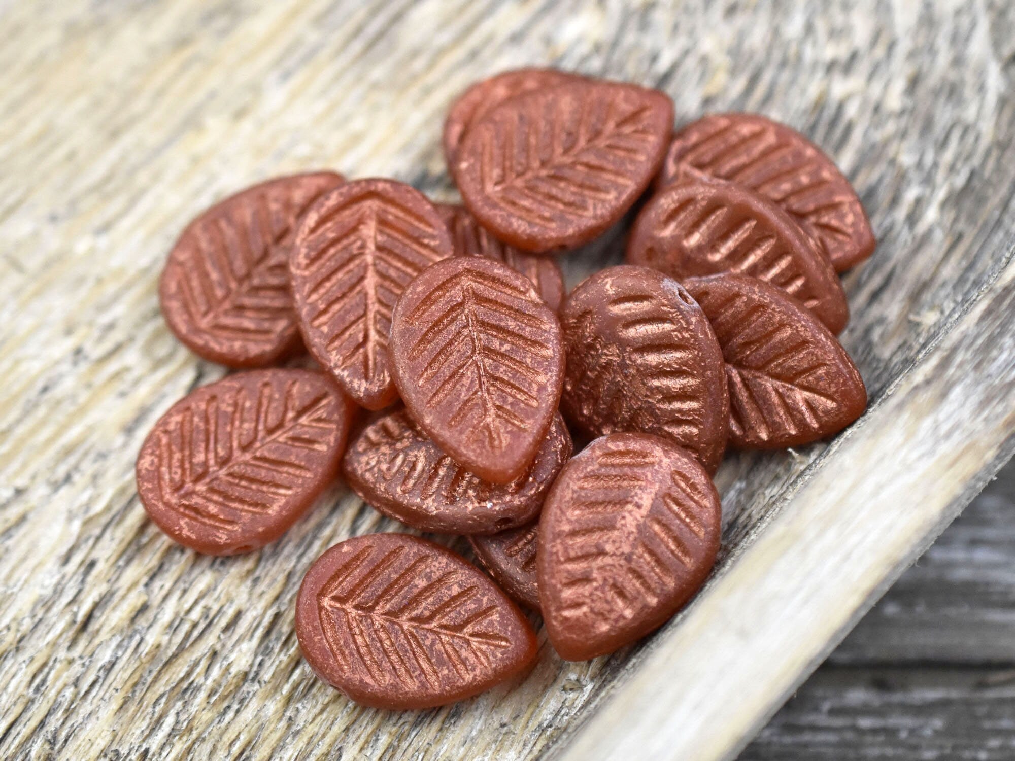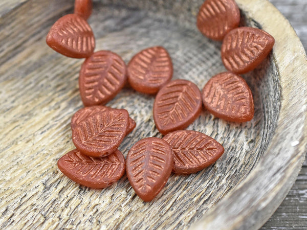 *15* 16x12mm Copper Washed Etched Burnt Orange Top Drilled Leaf Beads