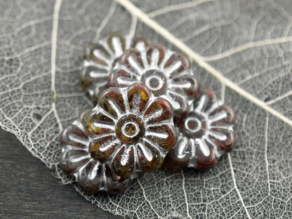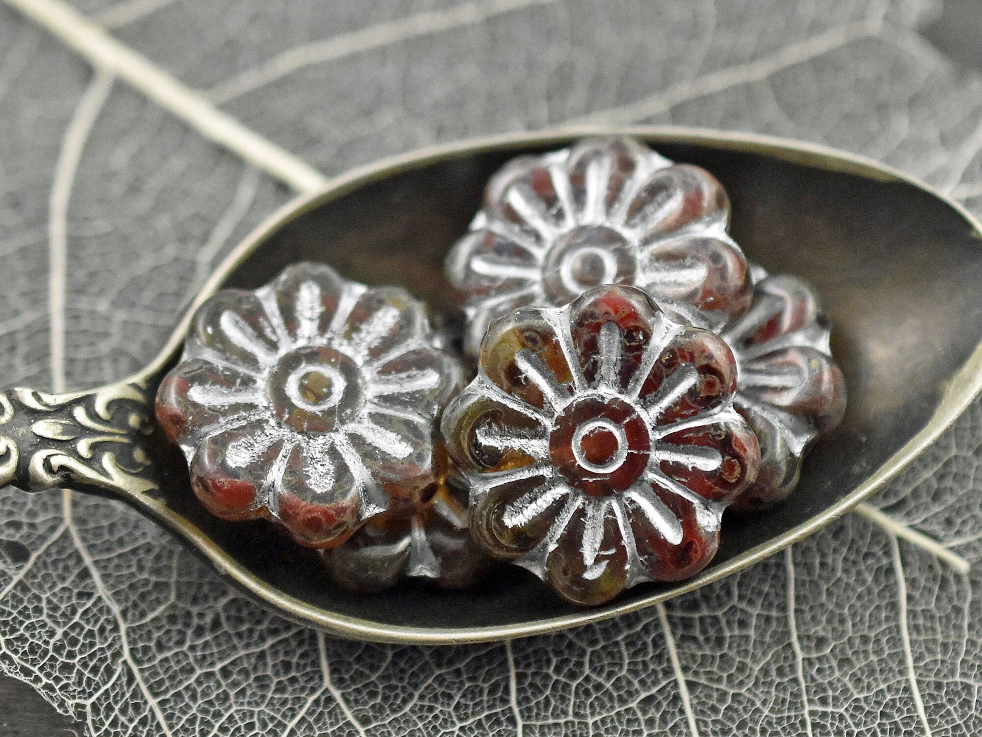 *6* 18mm Silver Washed Blended Red Topaz Daisy Flower Beads