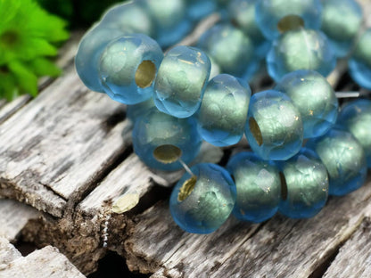 *15* 8x12mm Gold Washed Matte Blue Aqua Faceted Large Hole Rondelle Roller Beads