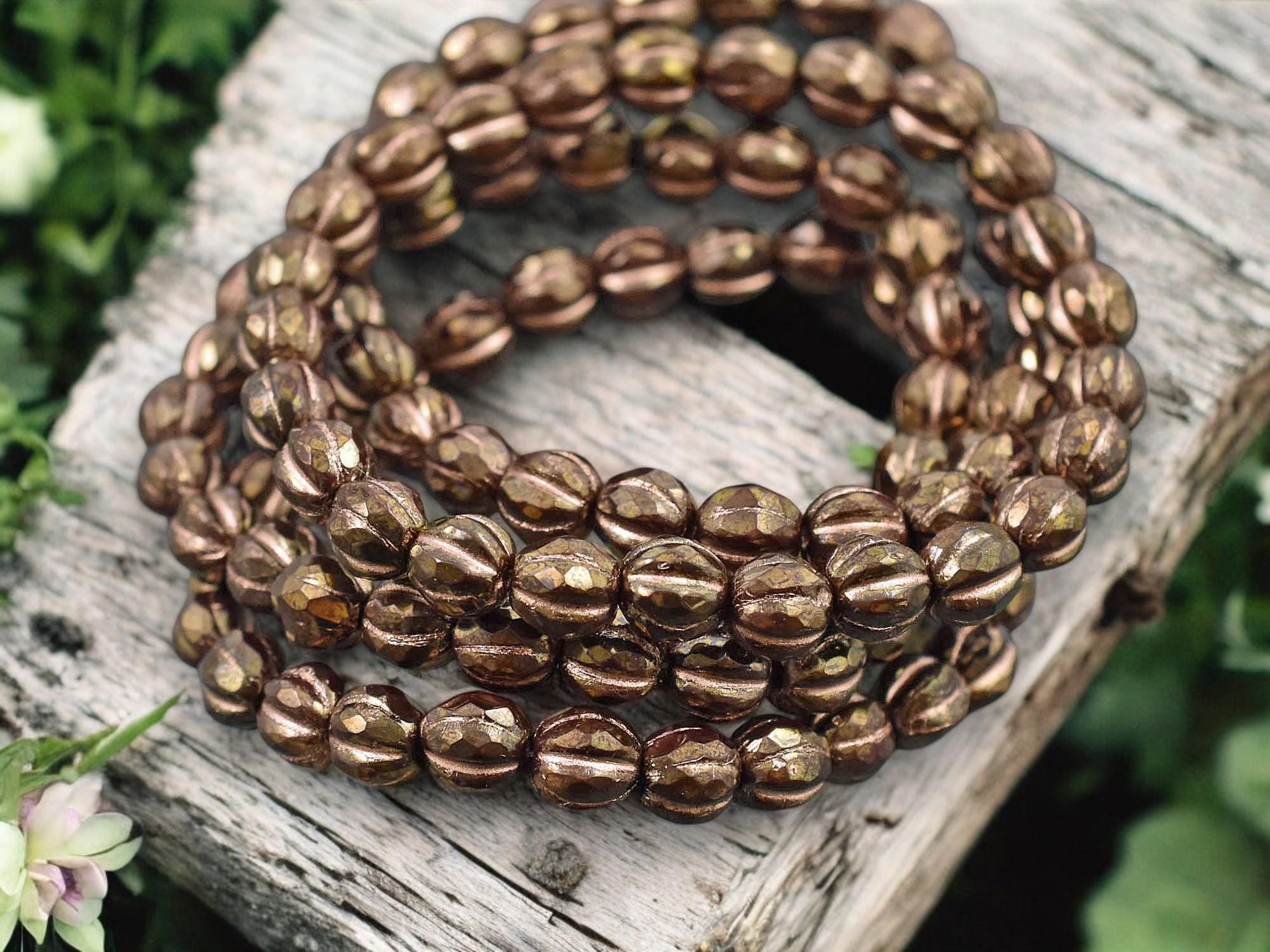 *25* 6mm Copper Washed Dark Bronze Faceted Round Melon Beads