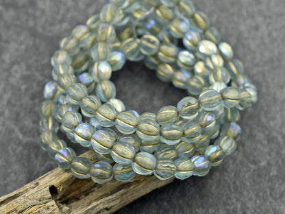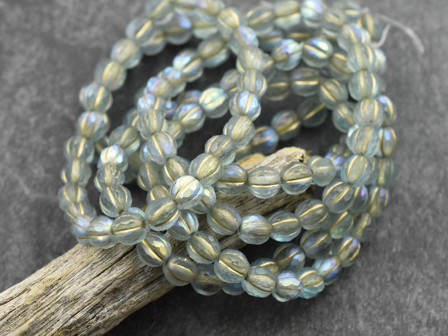 *25* 6mm Gold Washed Matte Blue Aqua AB Faceted Round Melon Beads