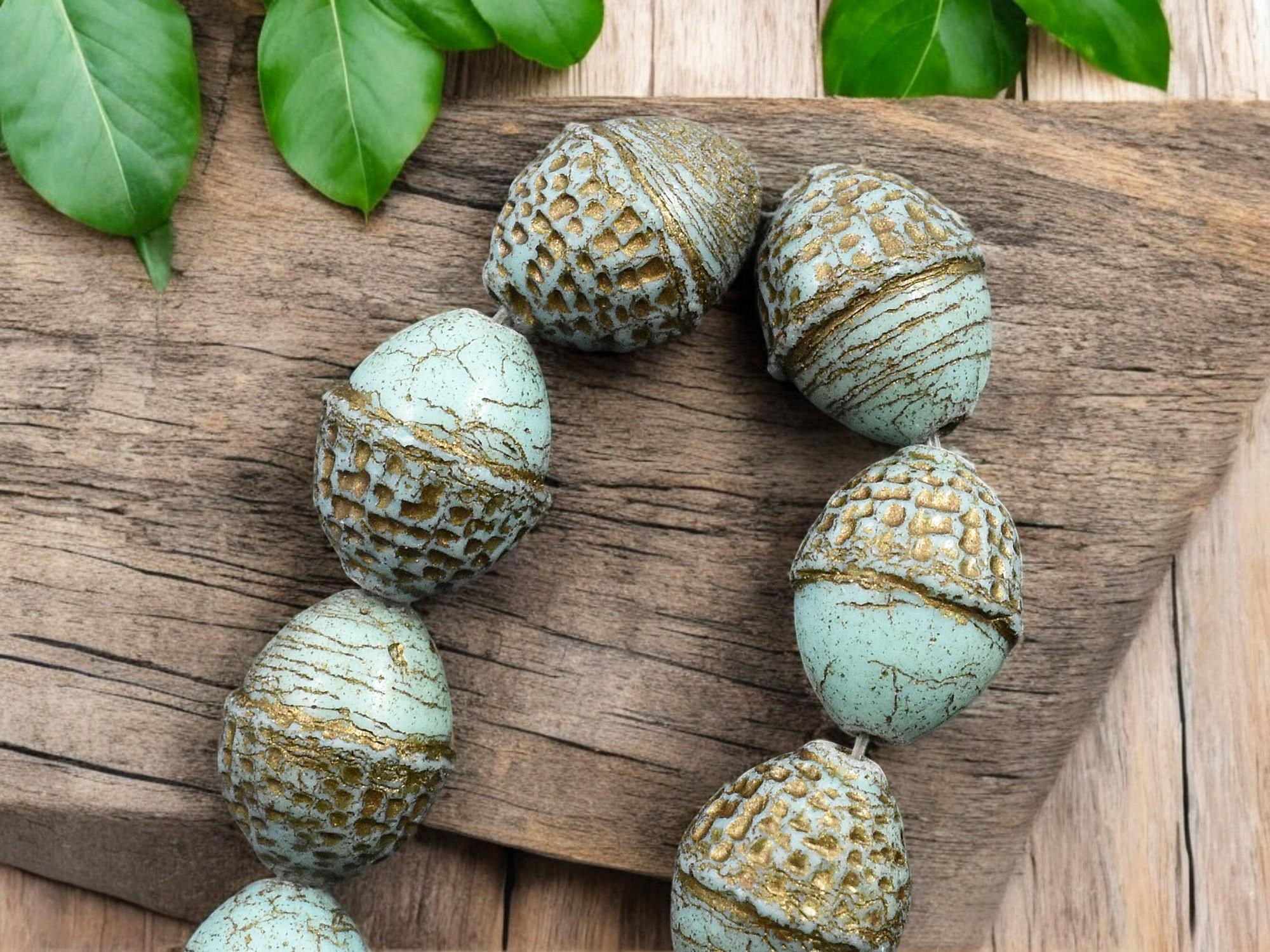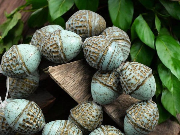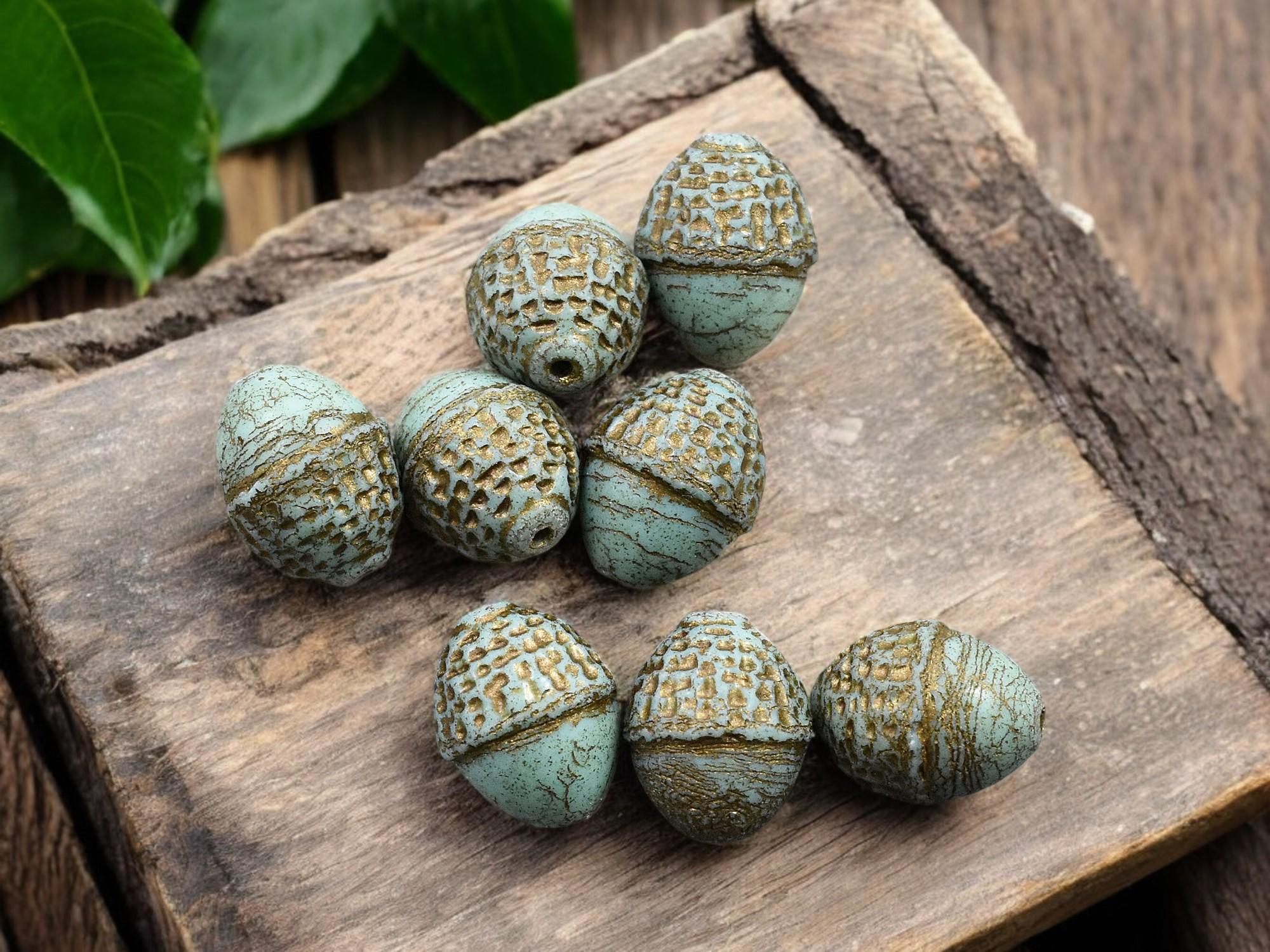 *8* 10x12mm Dark Bronze Washed Turquoise Acorn Oval Beads