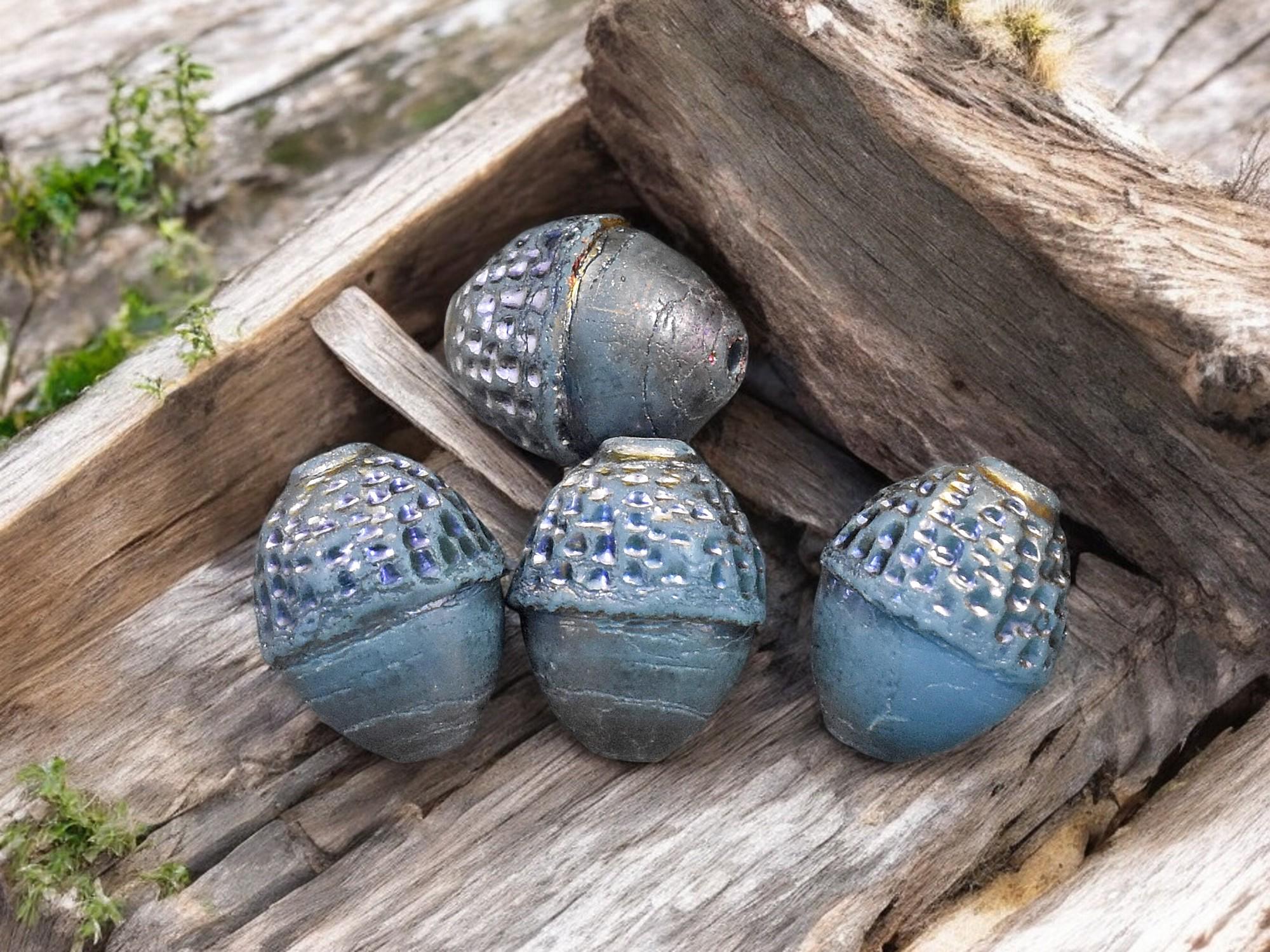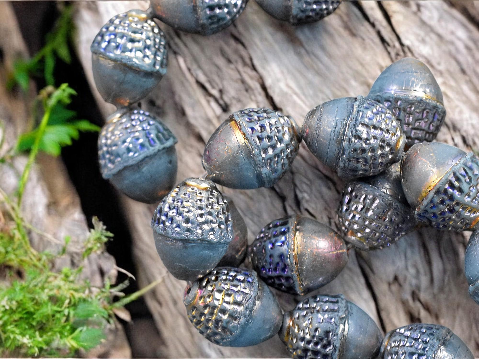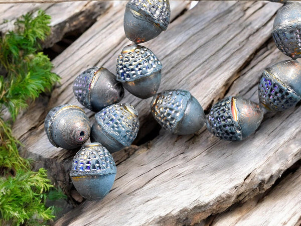 *8* 10x12mm Gold AB Washed Matte Dark Sky Blue Acorn Oval Beads