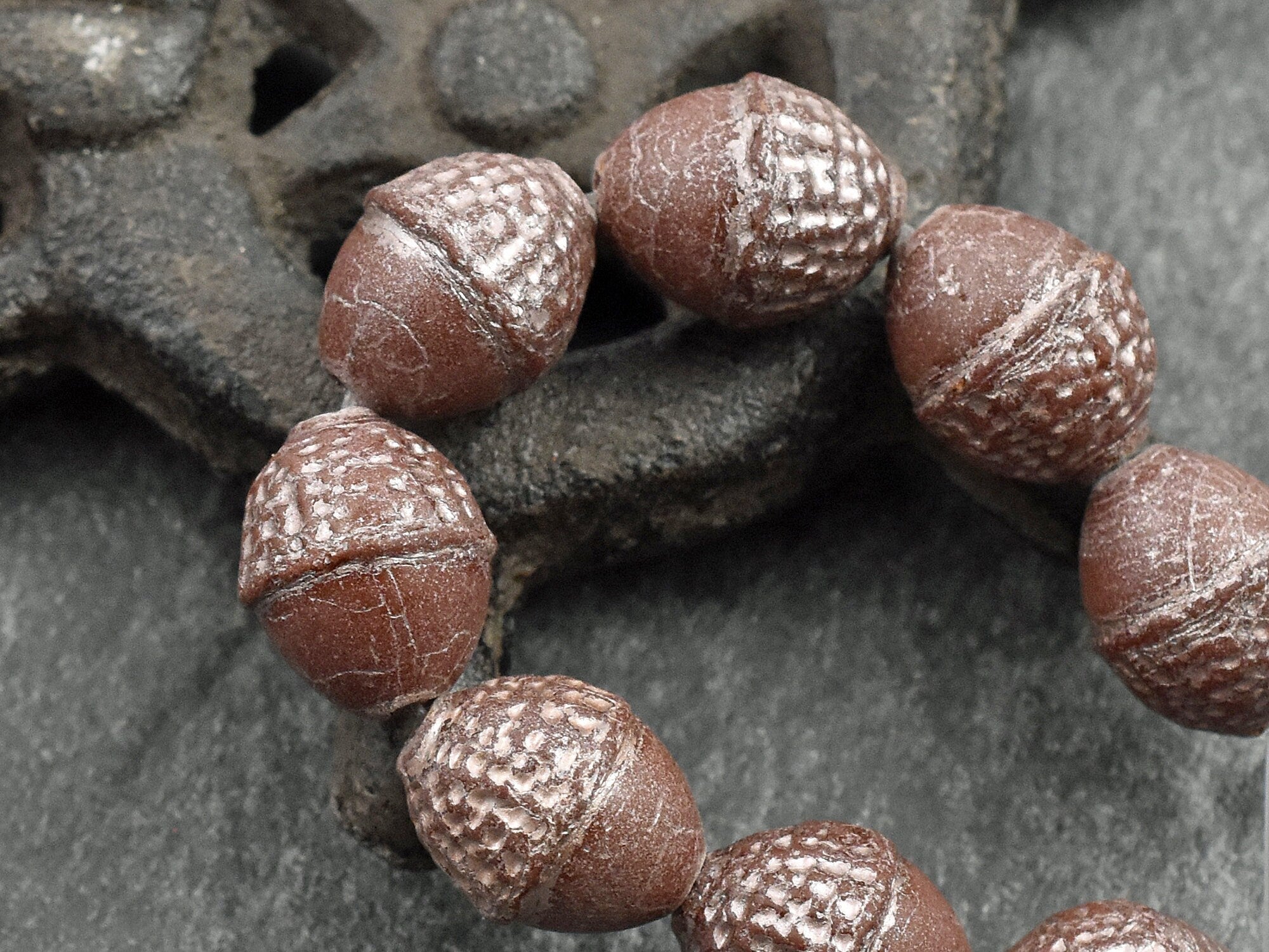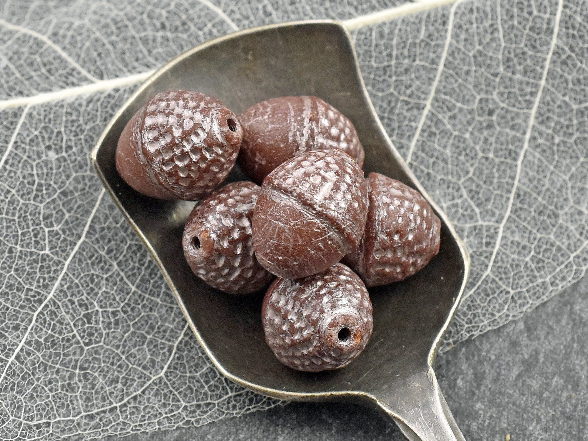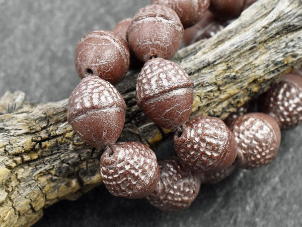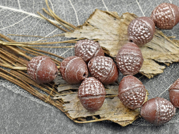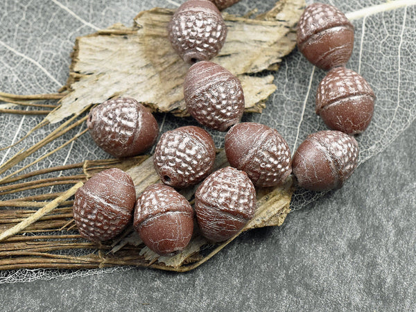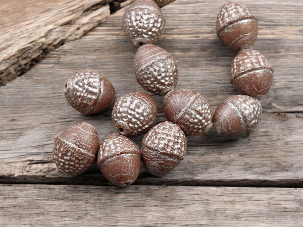 *8* 10x12mm Platinum Washed Opaque Chocolate Brown Acorn Oval Beads