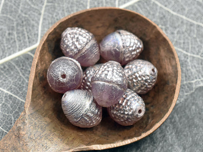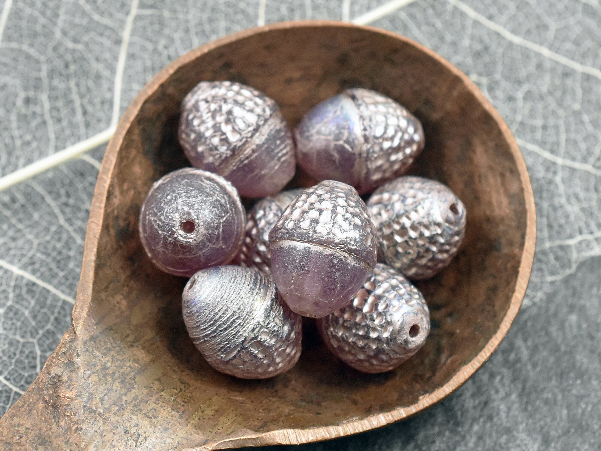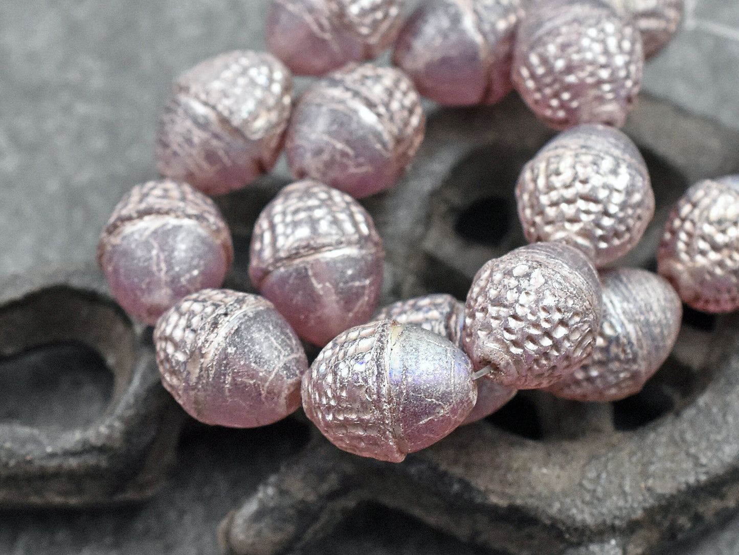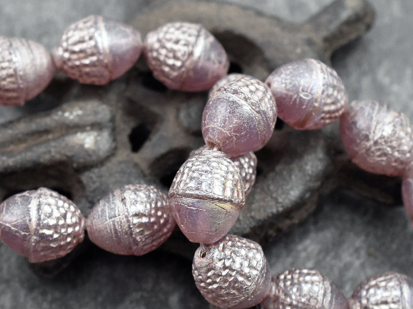 *8* 10x12mm Platinum Washed Semi Transparent Thistle Acorn Oval Beads