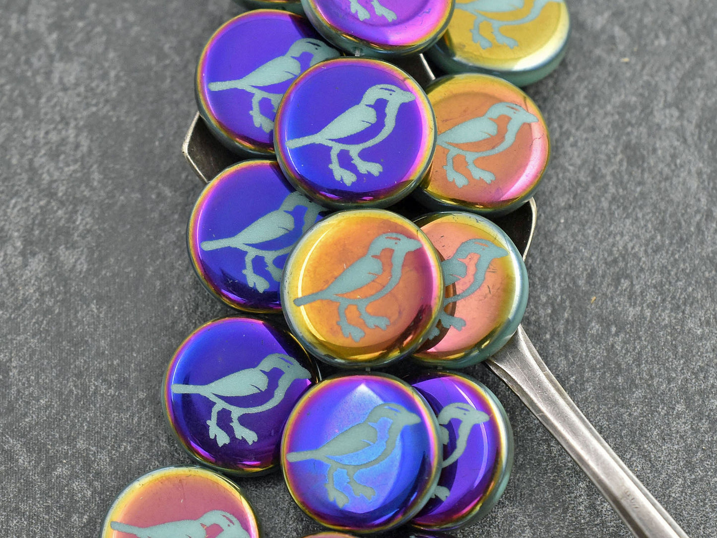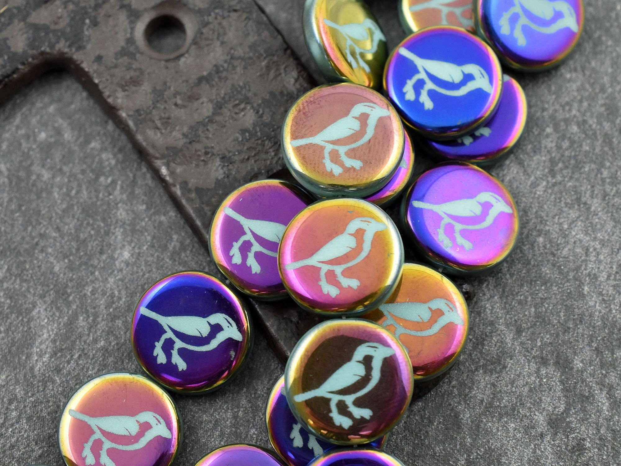 ♥ Type/Shape: Czech glass coin beads with laser etched bird design (both sides of bead)