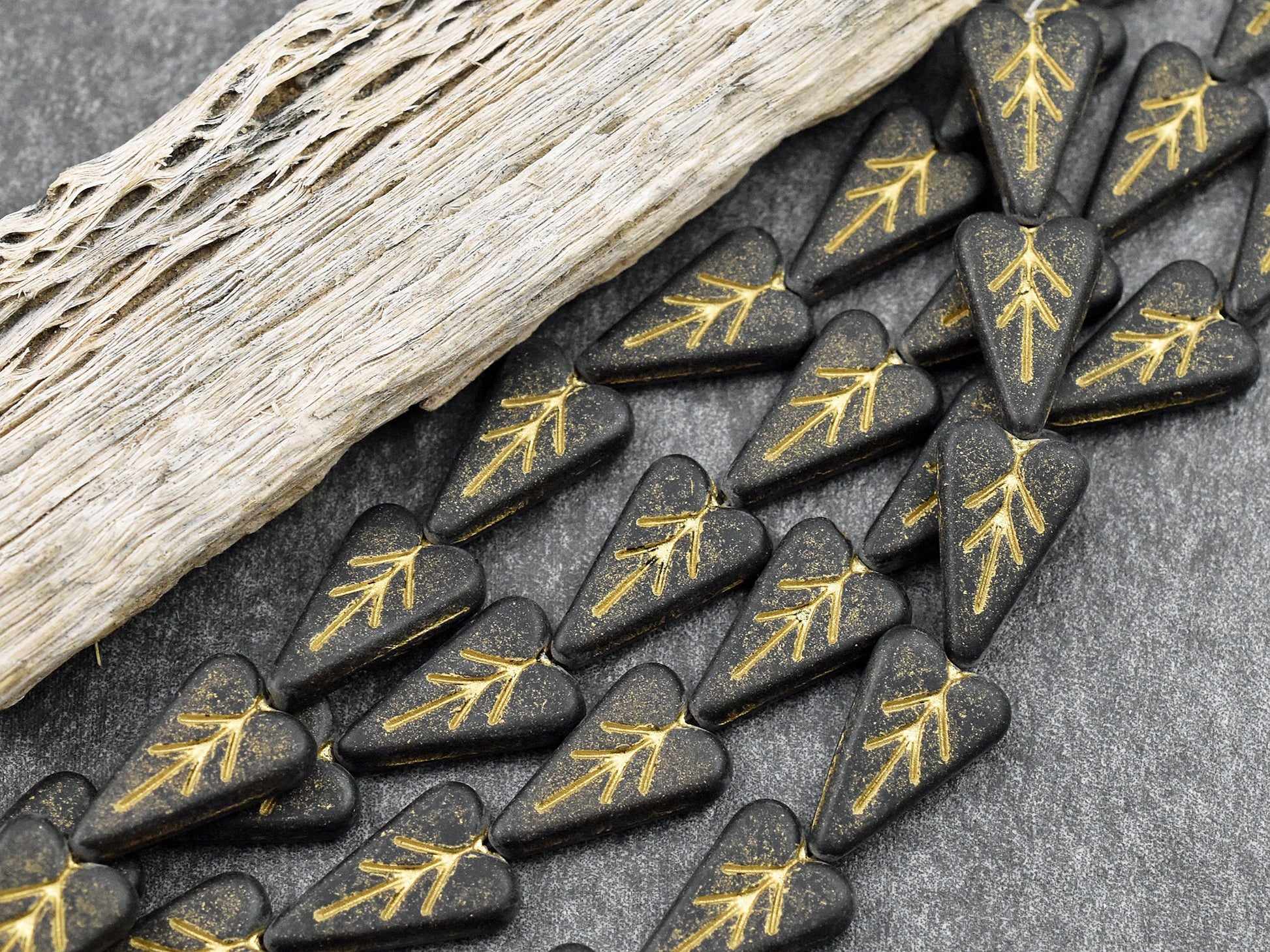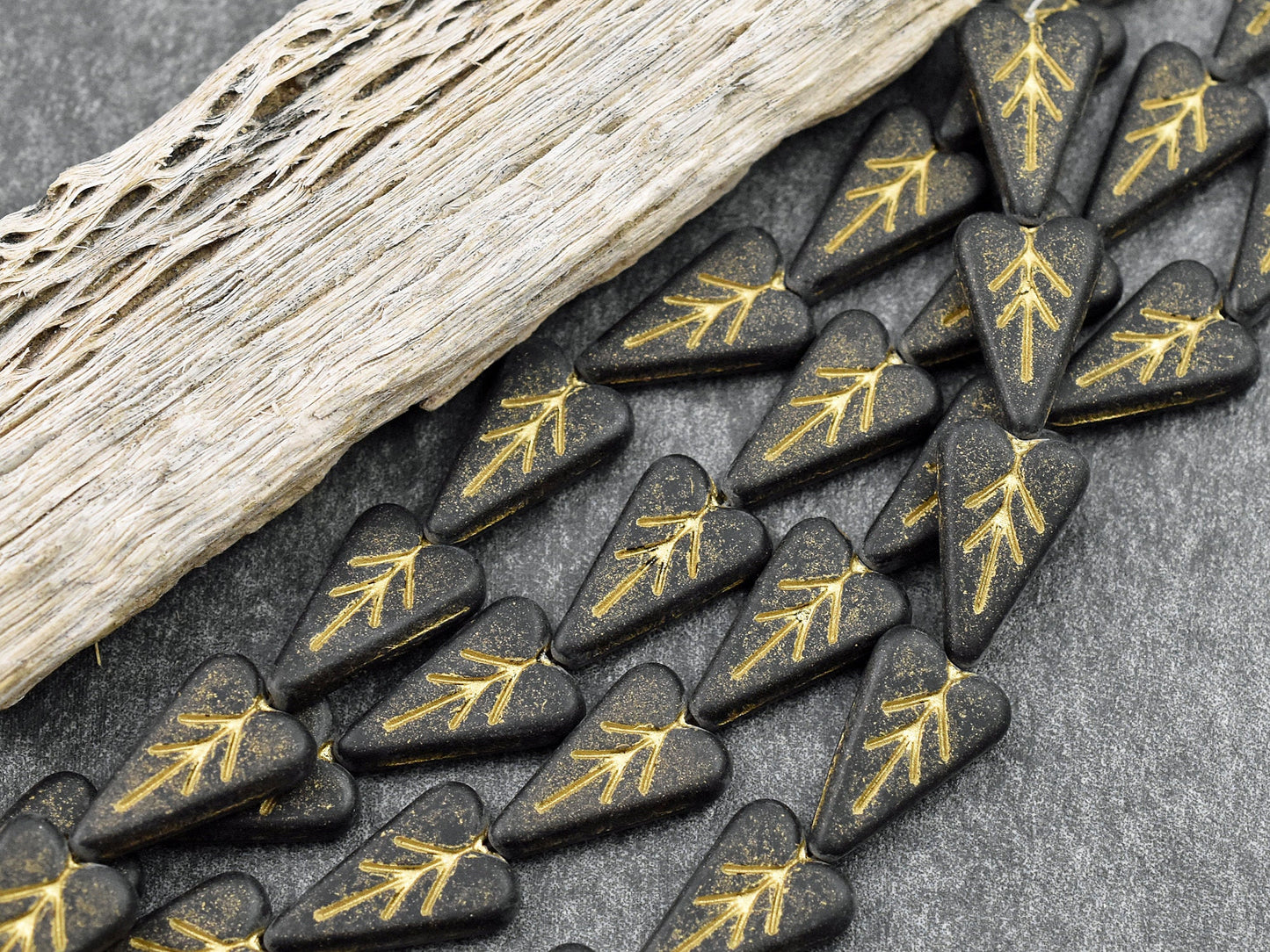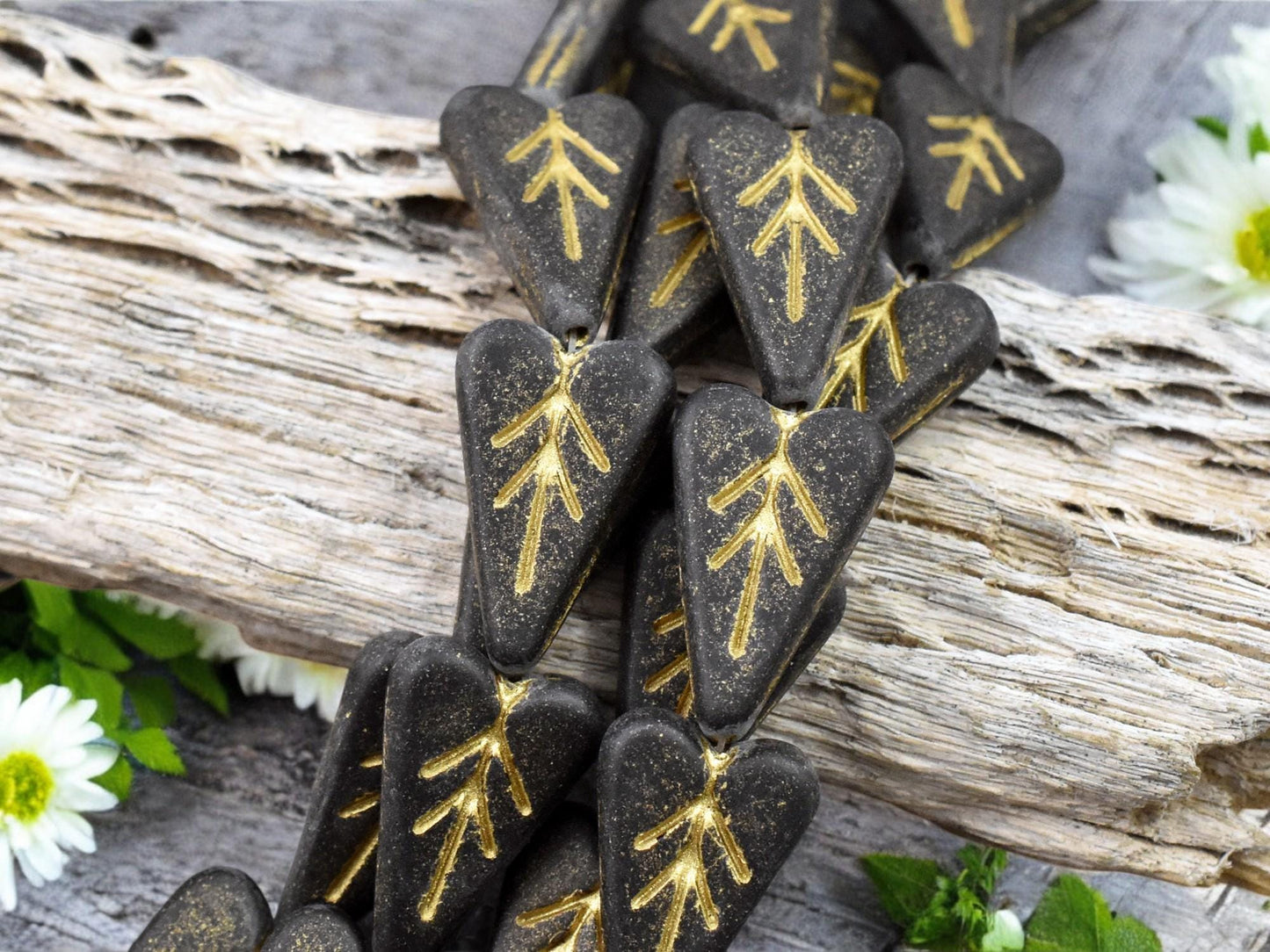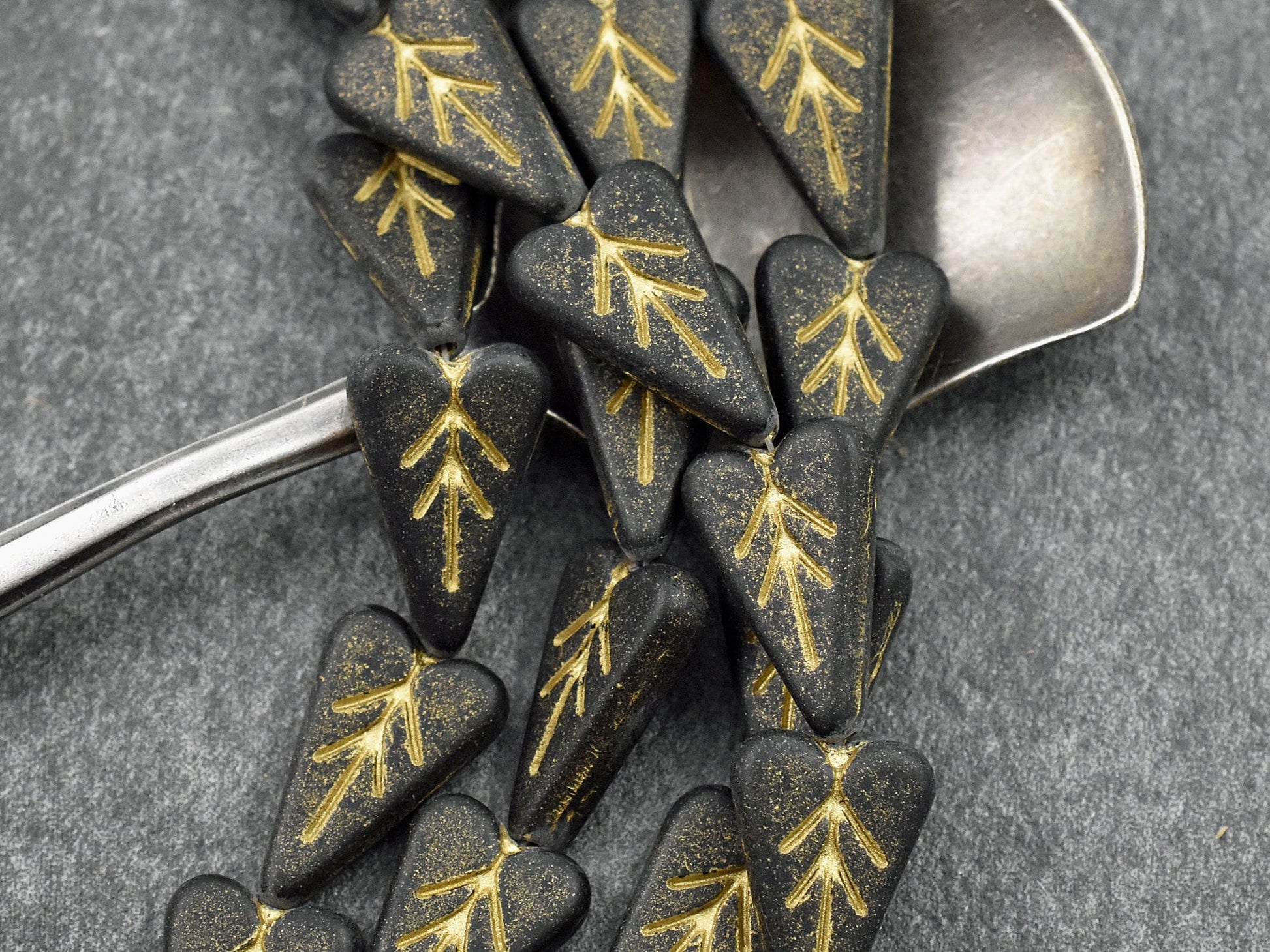 *8* 17x11mm Gold Washed Matte Jet Black Heart Leaf Beads